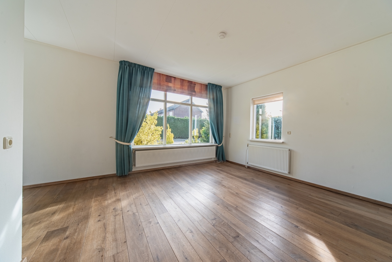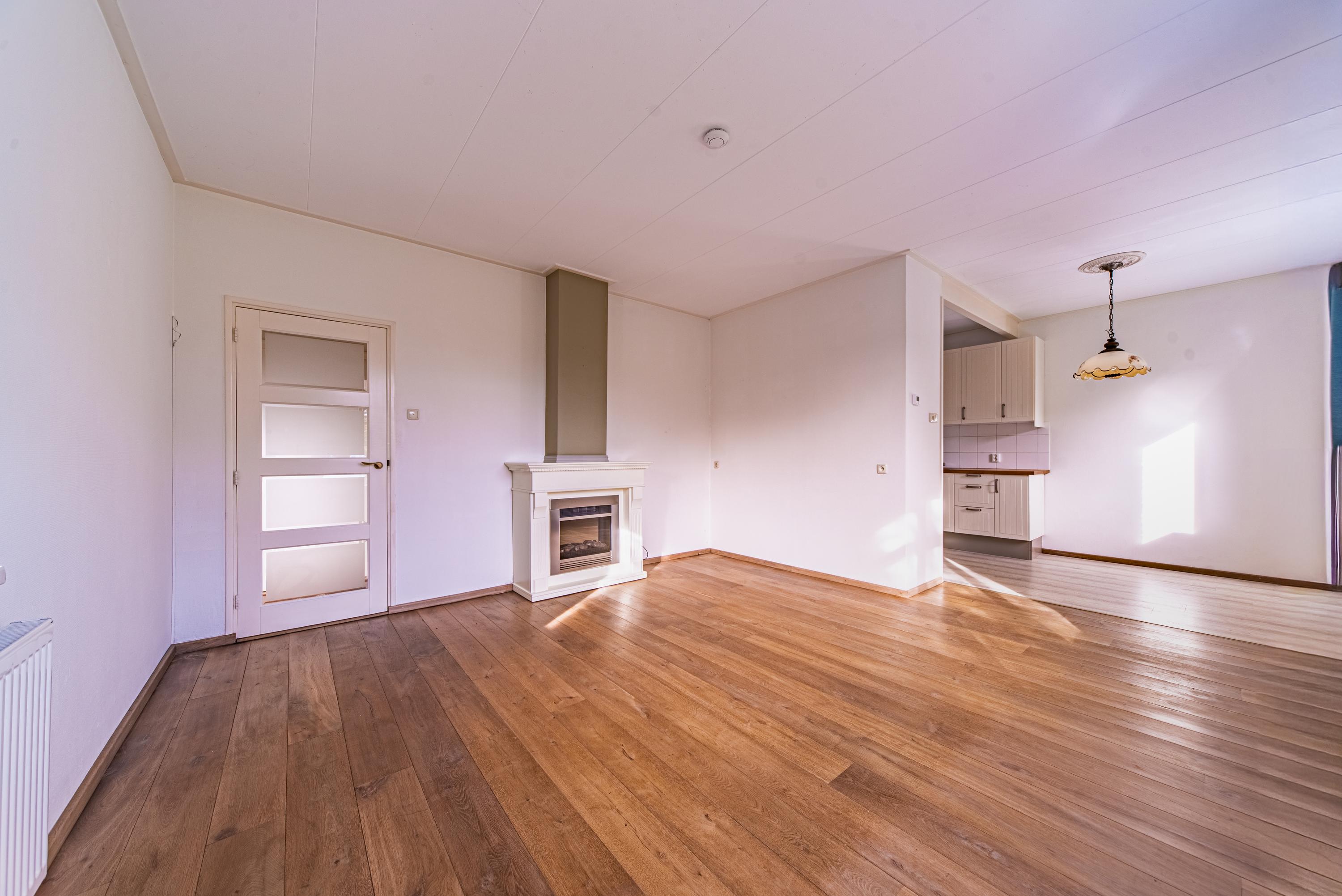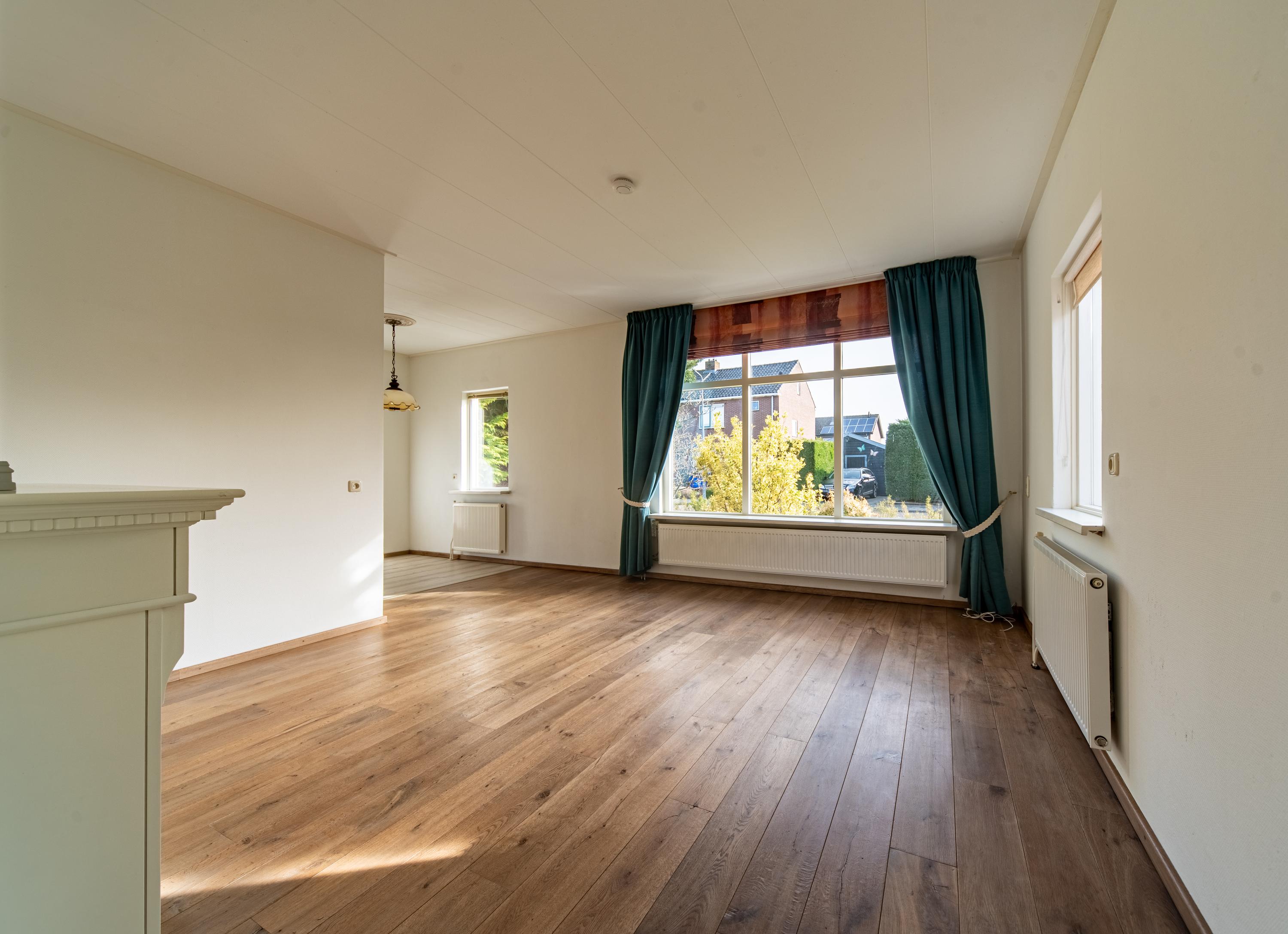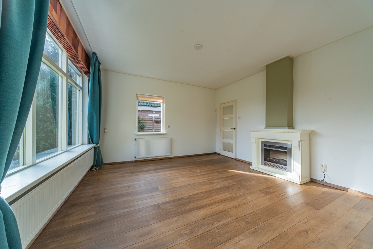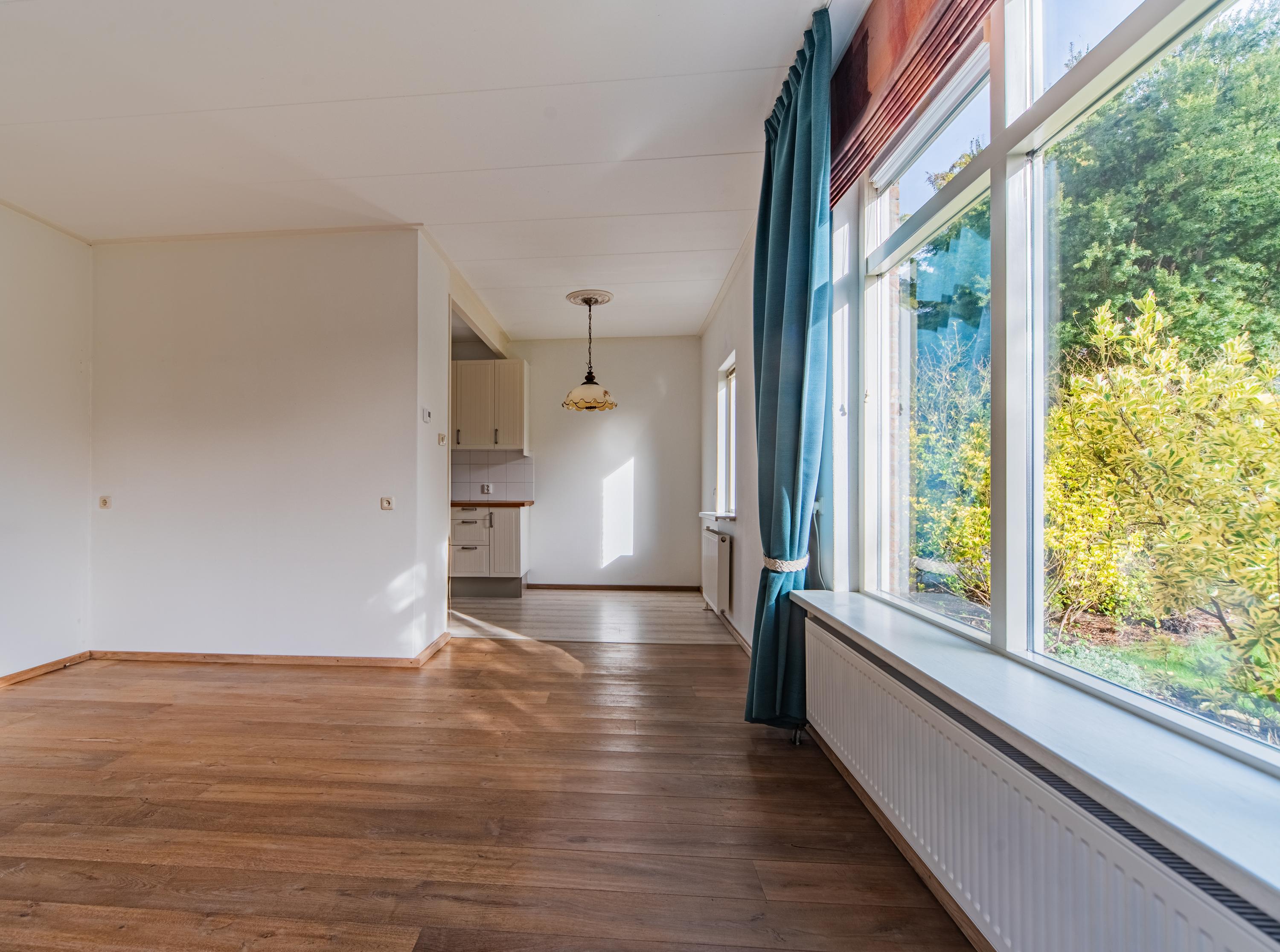 Bij binnenkomst in de woonkamer valt direct op hoe licht en overzichtelijk de woning is. De woonkamer heeft grote raampartijen en een prettige sfeer die uitnodigt om hier neer te strijken met een kop koffie of een goed boek.