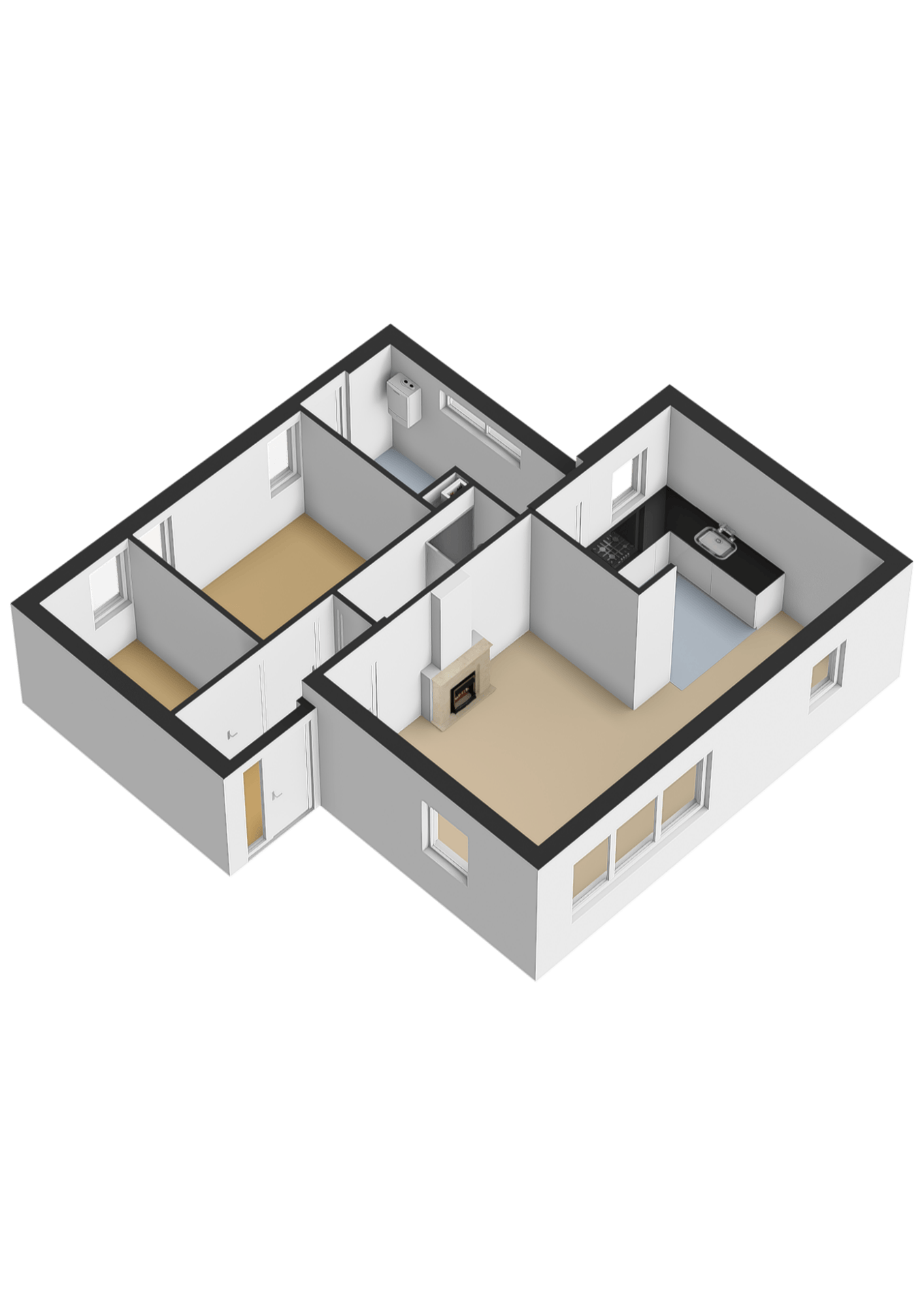 - Twee slaapkamers, waarvan één in gebruik als luxe inloopkast