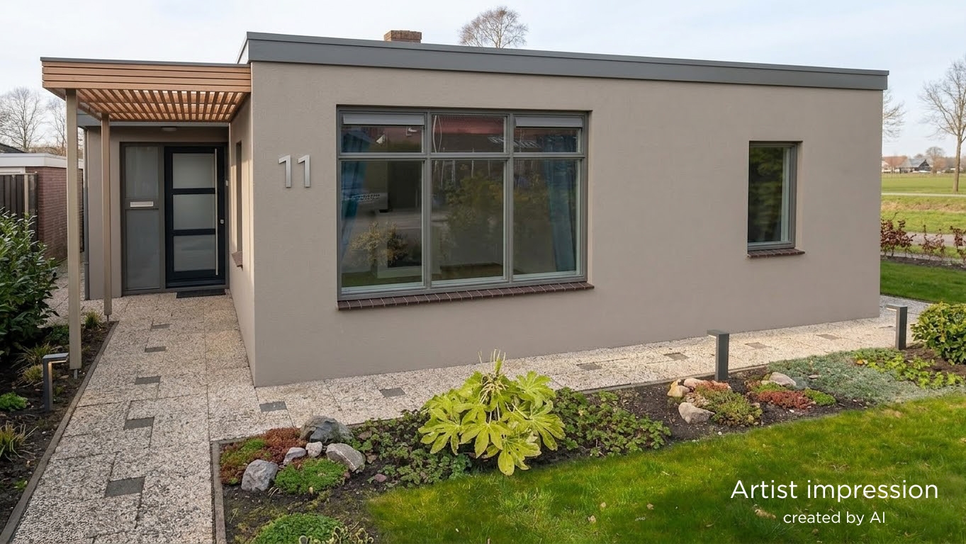 Groteweid 11 is een woning die u direct kunt betrekken, maar die vooral uitnodigt om er uw eigen draai aan te geven. De artist impressions laten zien hoe sfeervol en modern deze bungalow kan worden met relatief eenvoudige aanpassingen. Dankzij de gelijkvloerse indeling en de praktische ruimtes is dit een woning die met u meegroeit nu én in de toekomst.