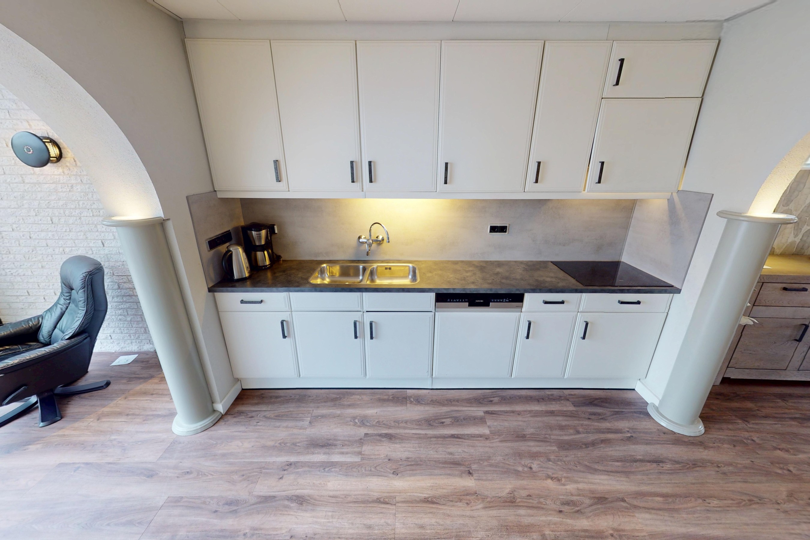 De recht opgestelde keuken is in een lichte kleurstelling uitgevoerd. Deze keurige keuken is voorzien van een inductiekookplaat, afzuigkap en een vaatwasser. De half open keuken is niet direct vanuit het zitgedeelte zichtbaar, maar wel betrokken bij de leefruimte. Dit betekent voor u dat u tijdens het koken toch contact hebt met uw mede gezinsleden, en dat u na het koken toch eerst even van uw favoriete soap op TV in de zitkamer kunt genieten, alvorens direct de behoefte opkomt om de keuken weer netjes op te ruimen. Uiteraard ontbreekt het in deze keuken niet aan opbergruimte en heeft u voldoende werkruimte. Geen probleem om hier met meerdere te kokkerellen. U zult elkaar hier niet in de weg lopen.