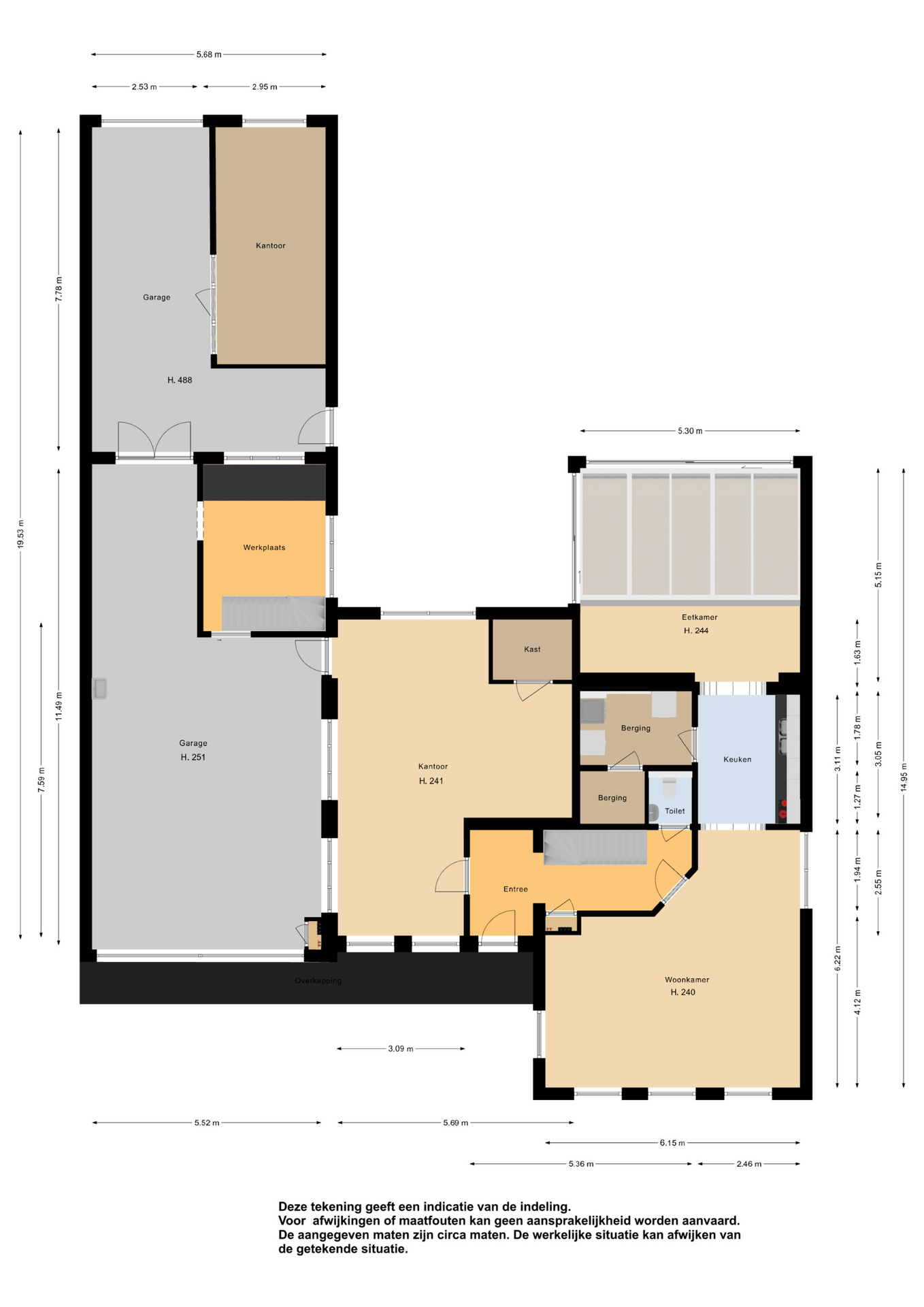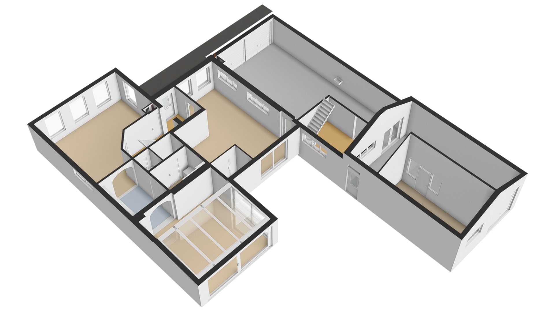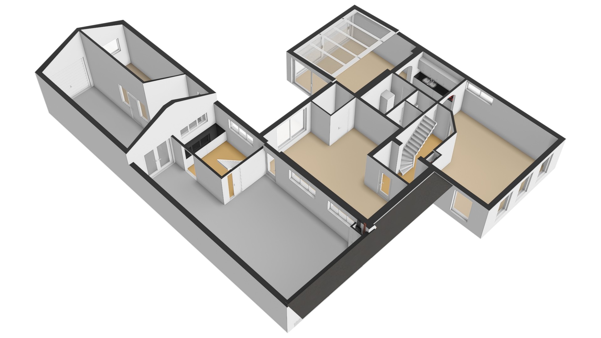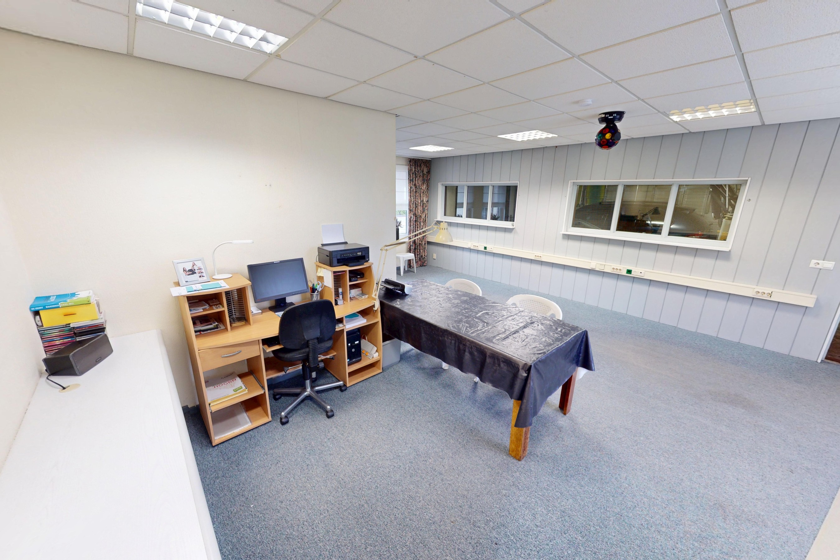 Kantoor / slaapkamer: vanuit de hal kunt u een kantoorruimte bereiken. Deze ruimte kunt u prima inrichten als een werkplek/kantoor aan huis. Vanuit de hal kunt u deze ruimte direct bereiken, zodat men niet door uw privé gedeelte hoeft te gaan. Uiteraard heeft u ook de mogelijkheid om hier een lekkere loungeplek voor de kinderen te maken. Heeft u meer de behoefte aan een slaapkamer en/of badkamer op de begane grond, dan heeft u hier meer dan voldoende ruimte voor.