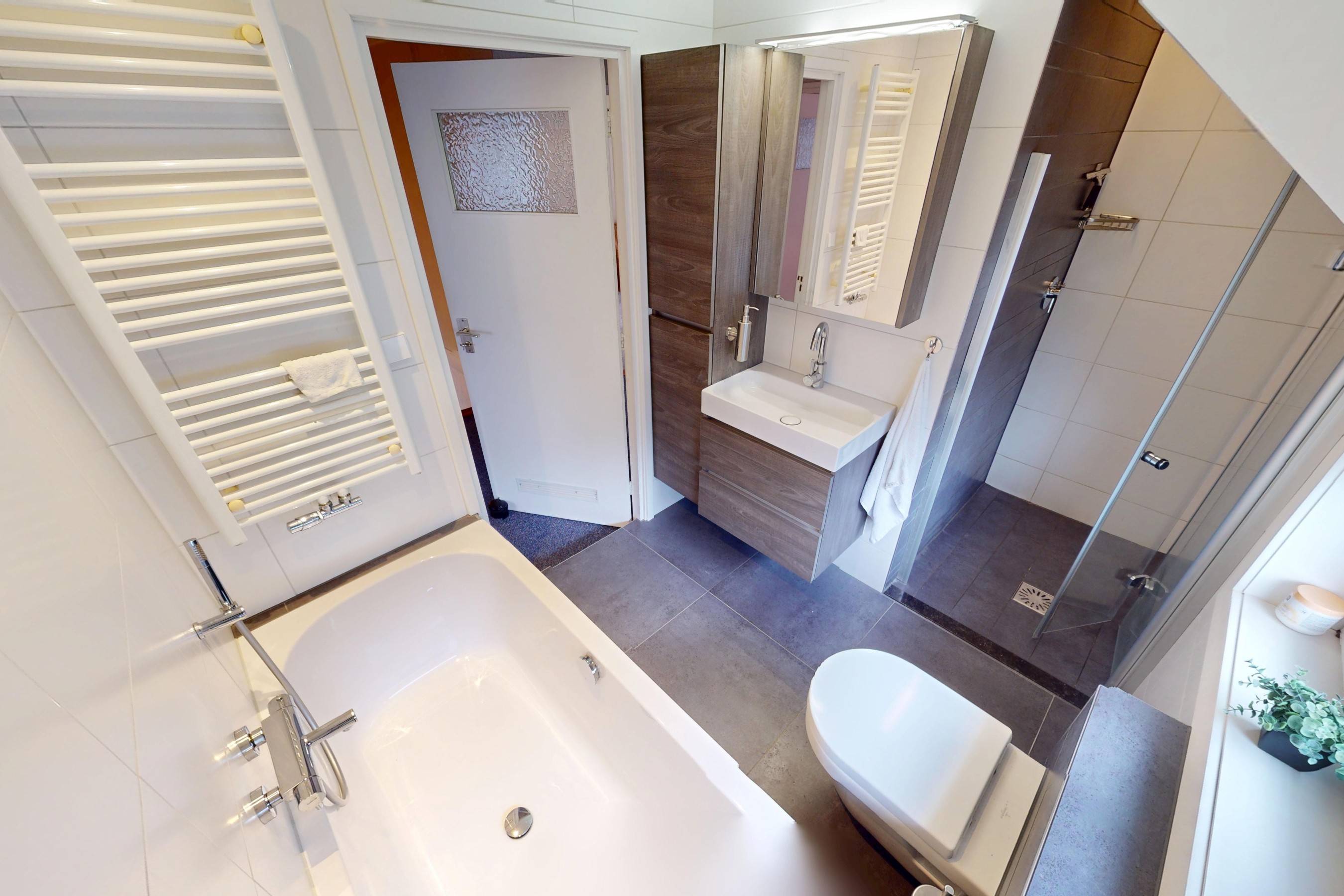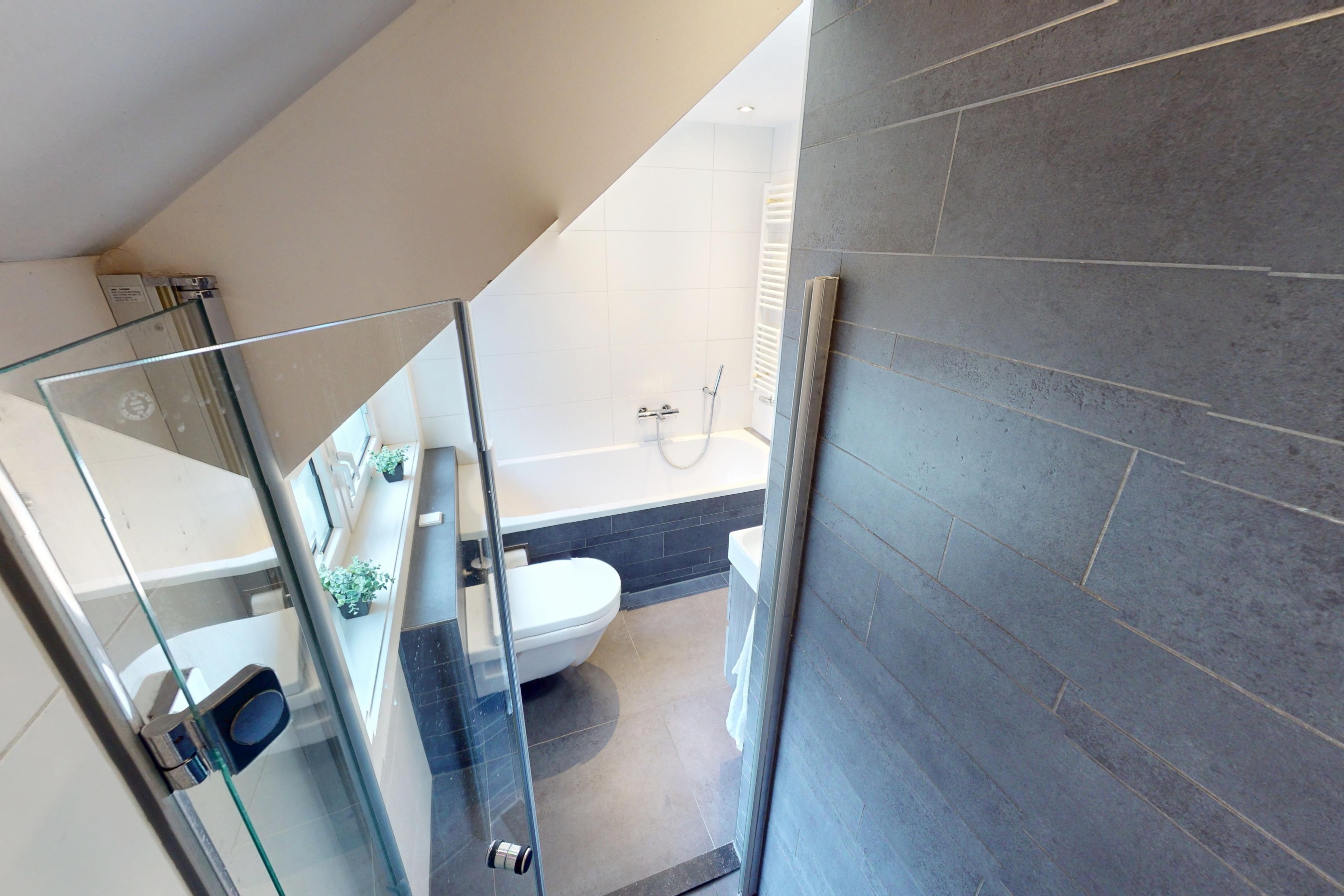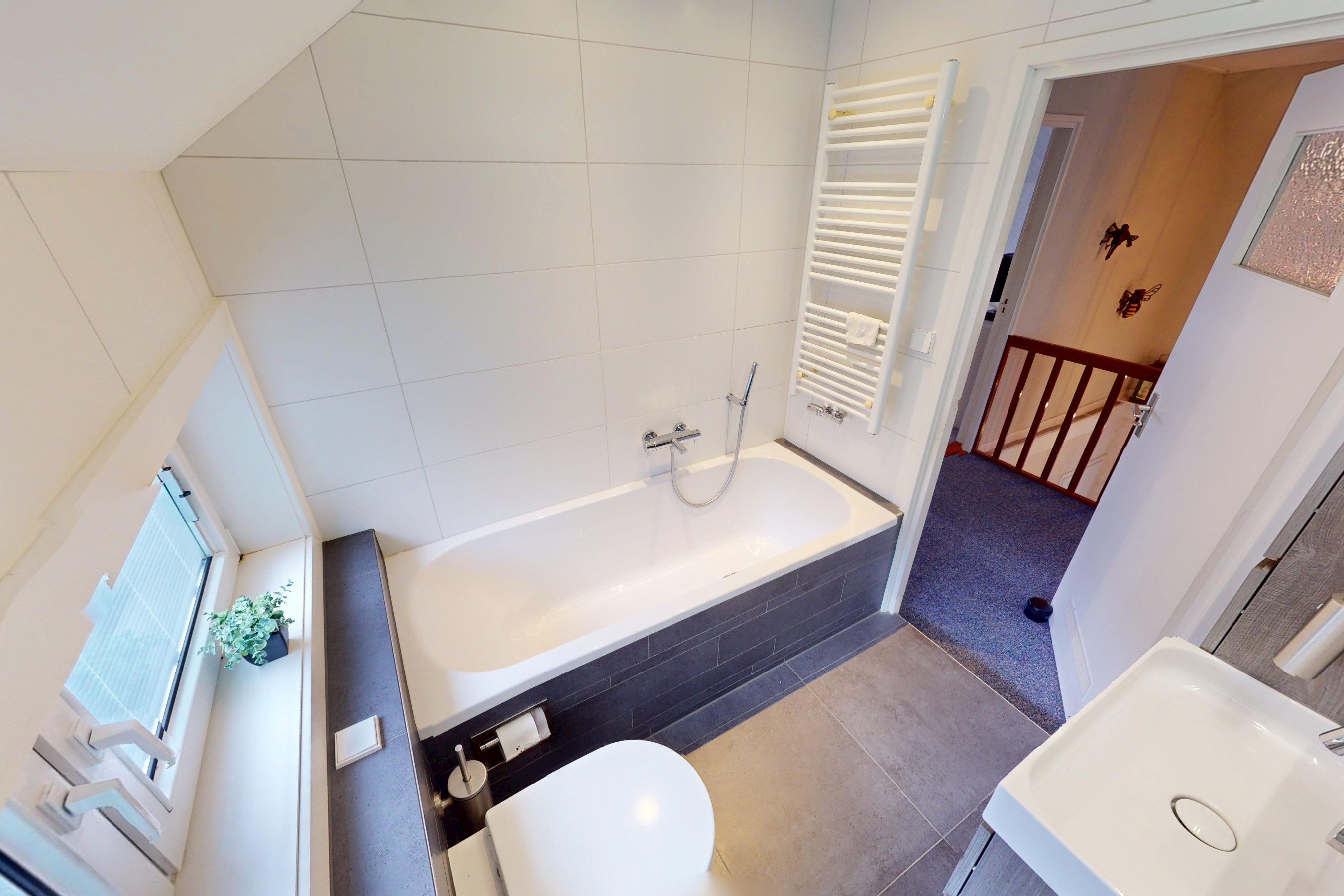 Badkamer: de moderne luxe badkamer is uitgevoerd in een moderne kleurstelling met fraaie vloertegels. De badkamer is een ware relaxruimte met een inloopdouche, een wastafelmeubel, een hangcloset en een heerlijk ligbad. Uiteraard treft u hier ook een designradiator aan.