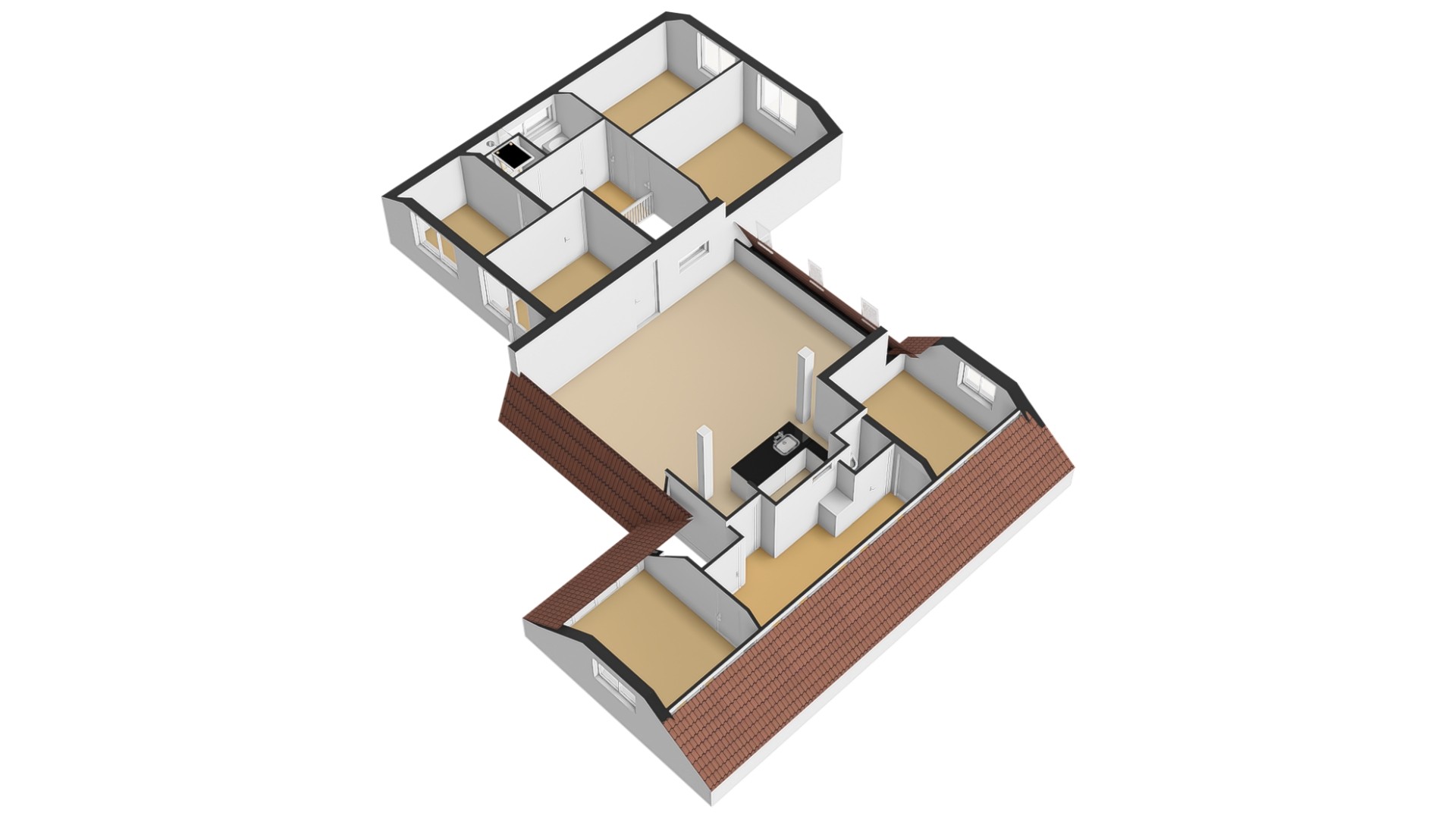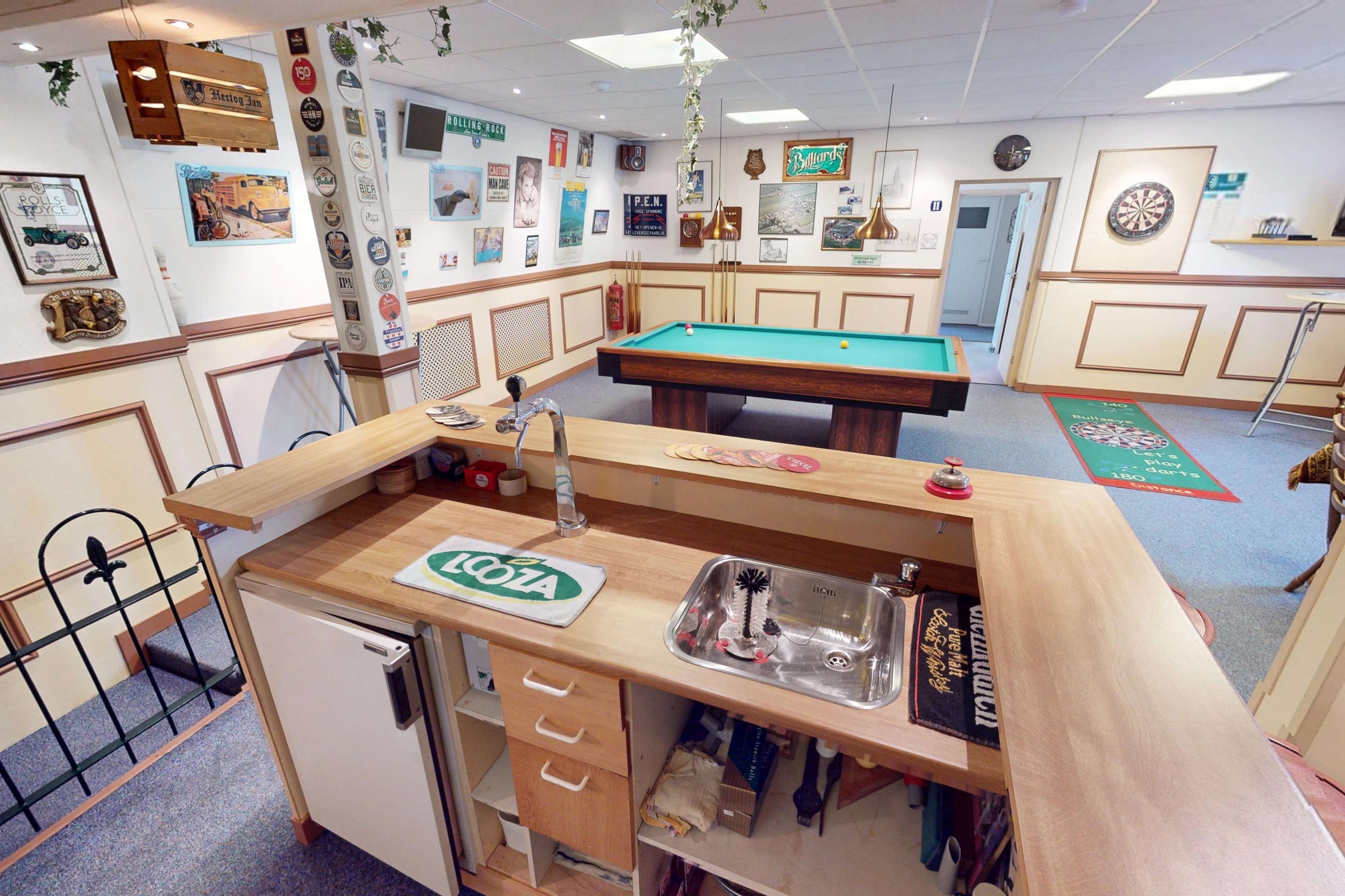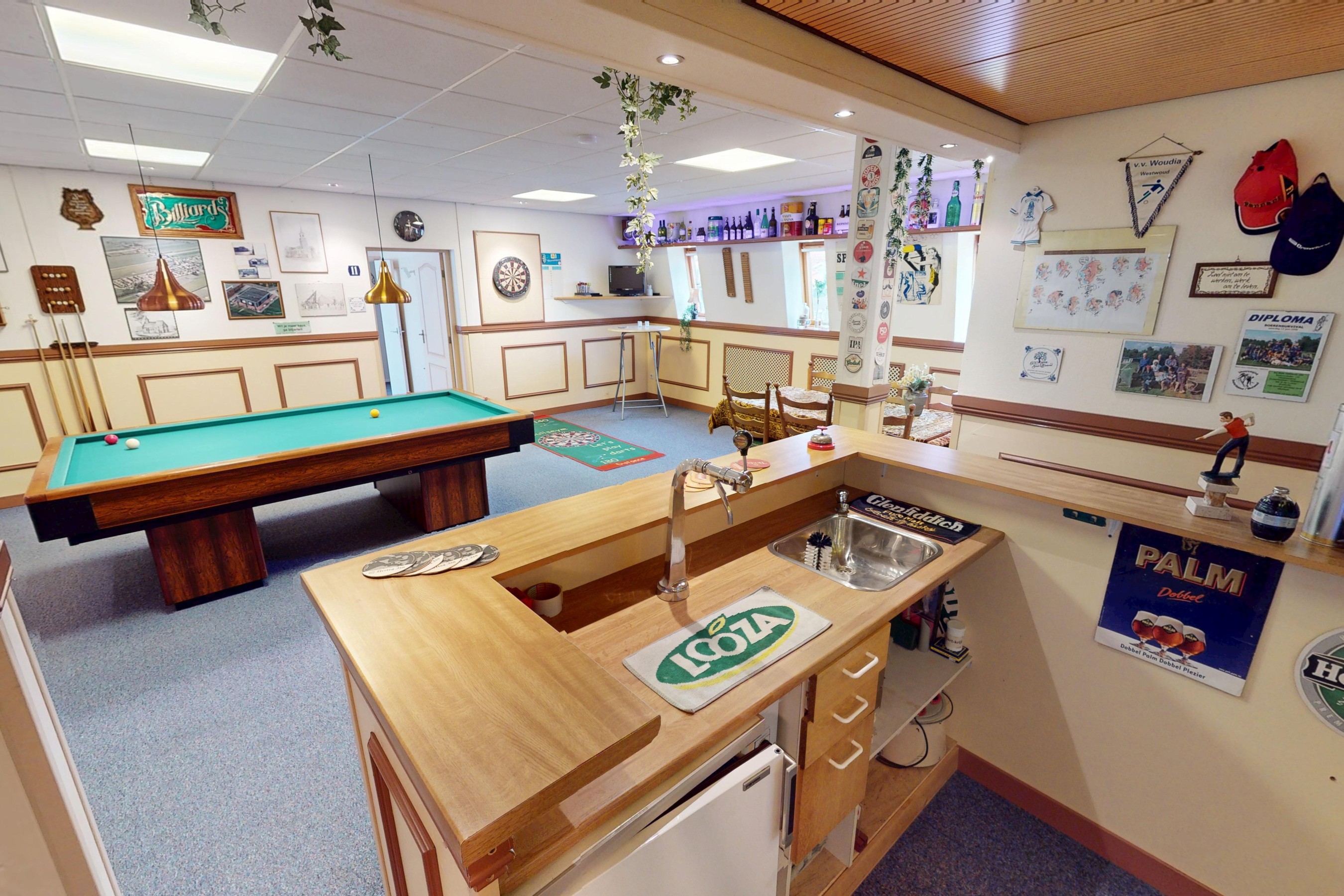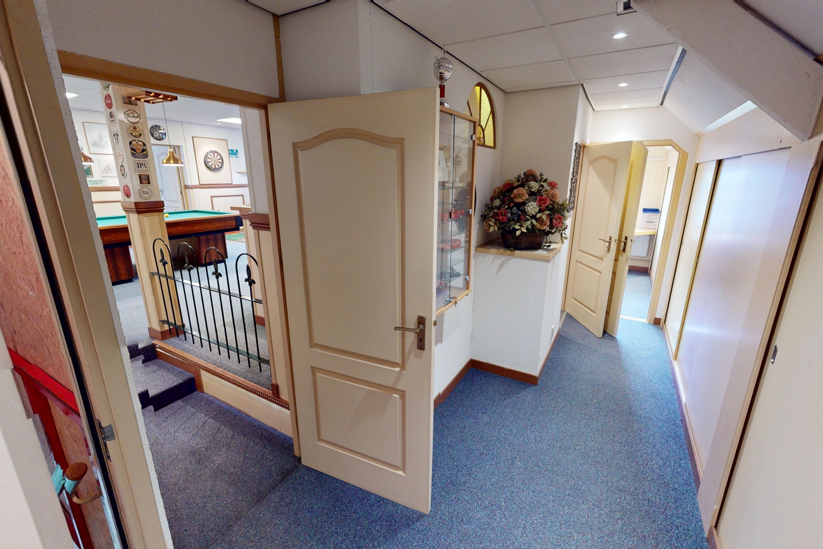 1e verdieping: via de overloop boven het woonhuis kunt u 5 ruime kamers bereiken. U treft hier 3 prima slaapkamers, een doorloop(slaap)kamer en een enorme familiekamer/mancave/kroeg/biljartkamer/chillruimte/gameroom aan. Alle slaapkamers zijn netjes afgewerkt. In een van de slaapkamers heeft u extra een wastafel tot uw beschikking. In 2 van deze slaapkamers kunt u een tweepersoonsbed plaatsen.