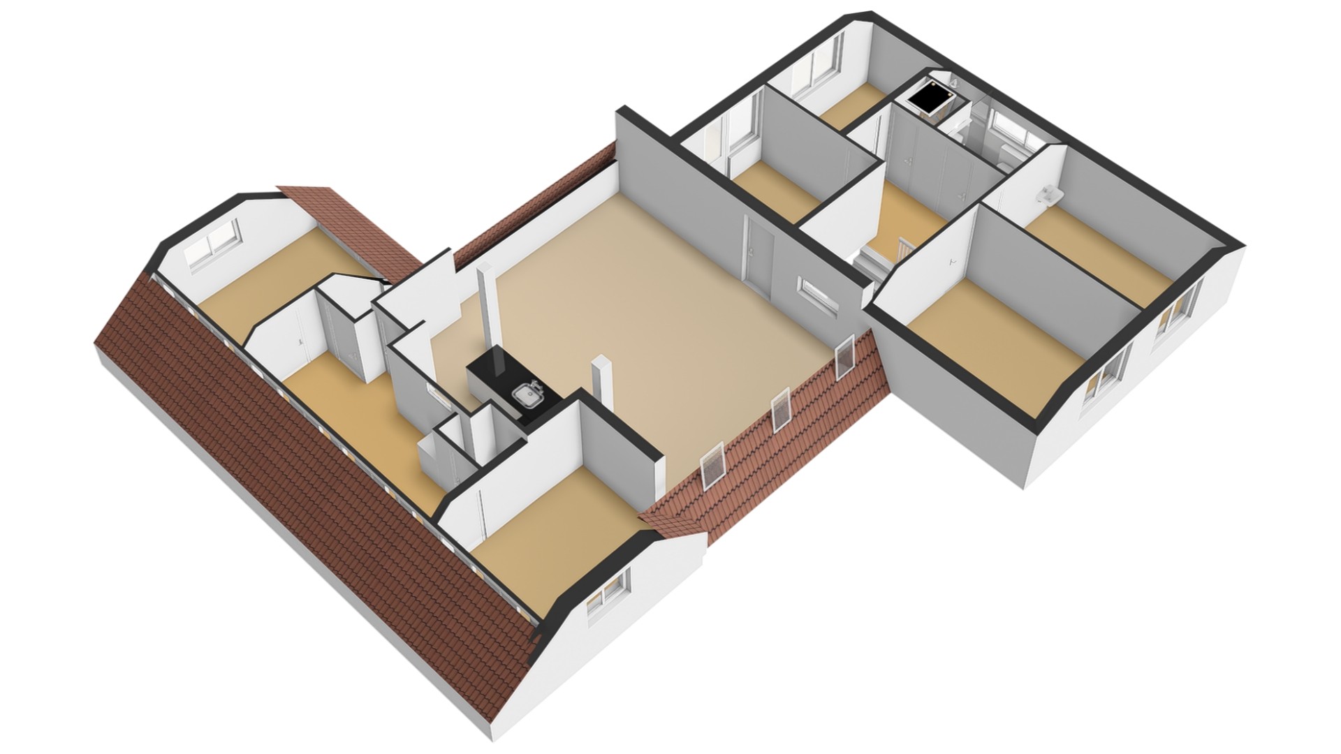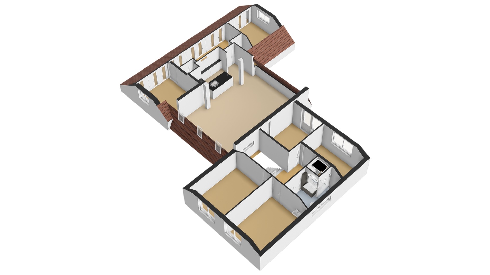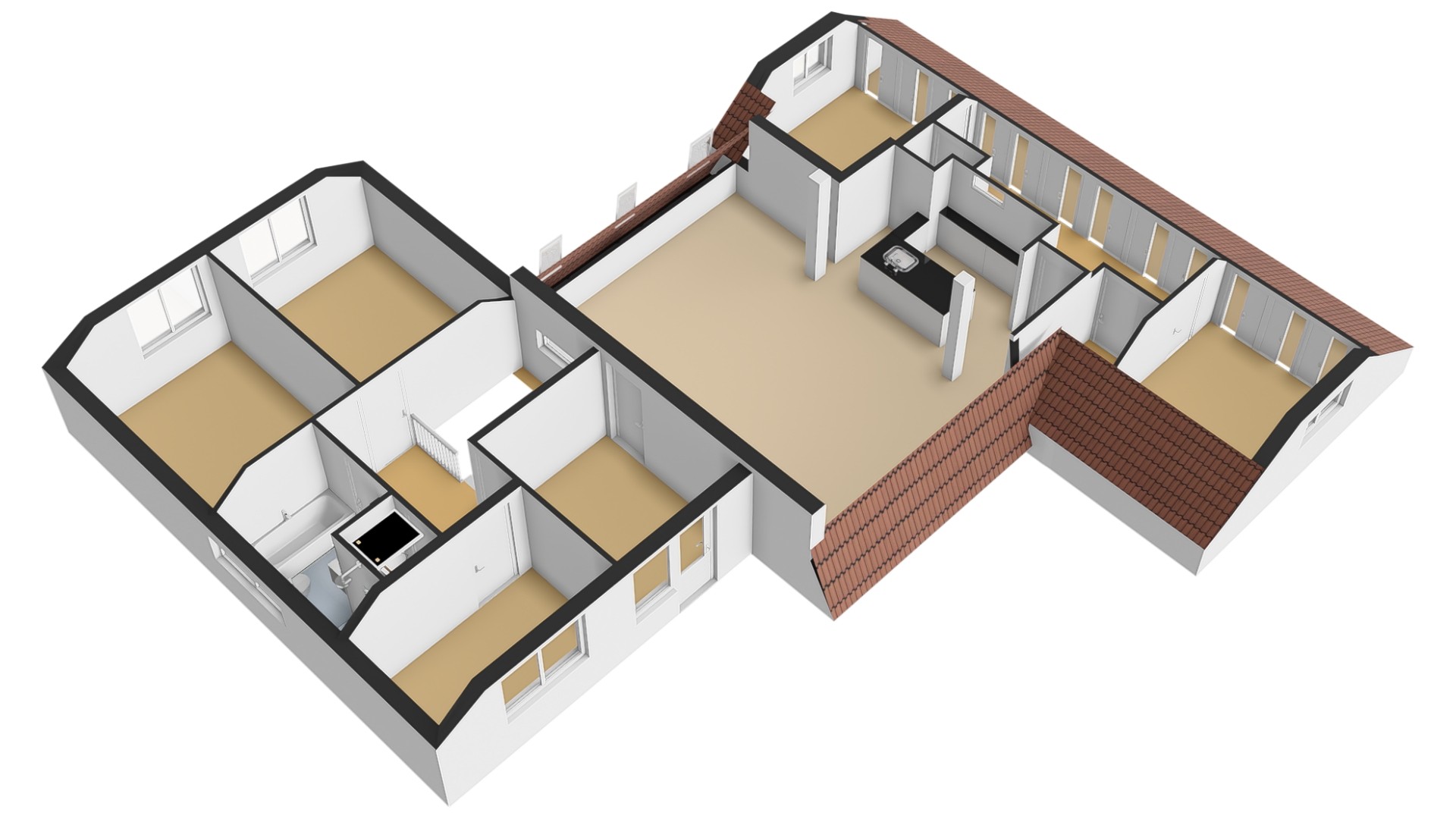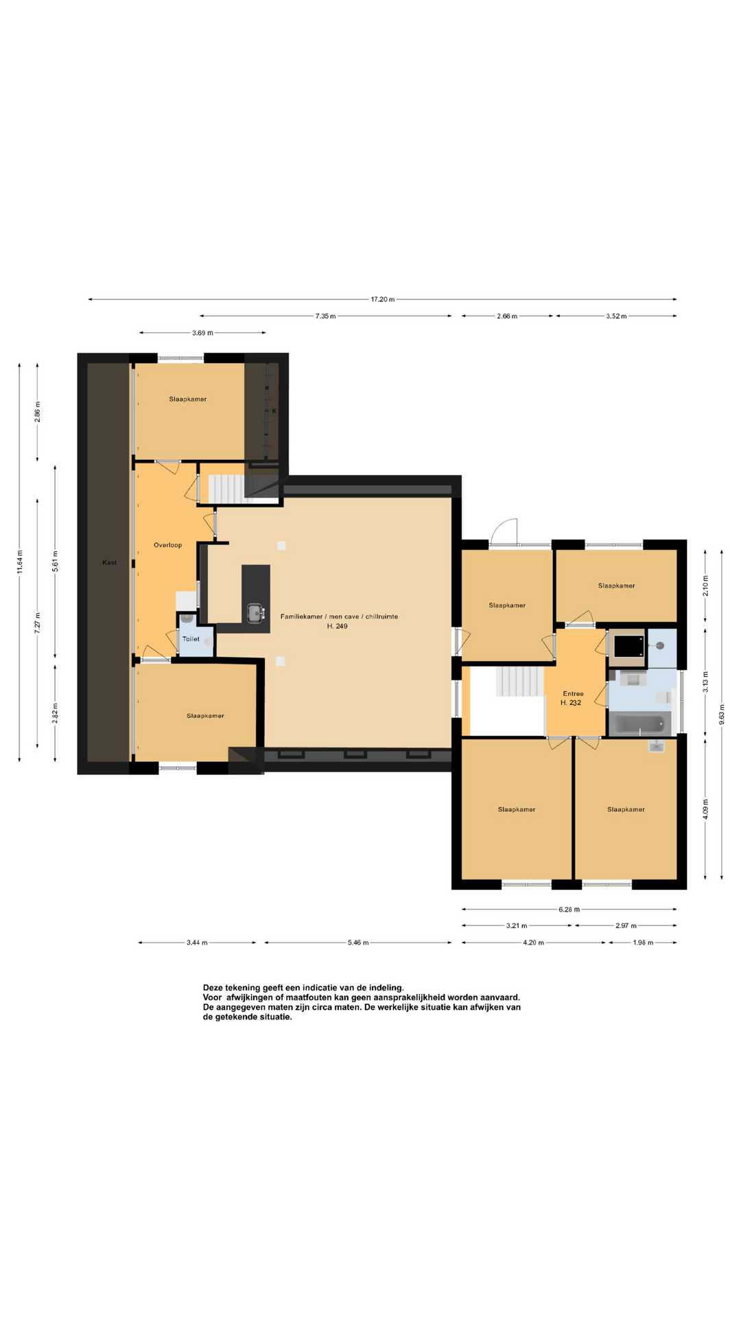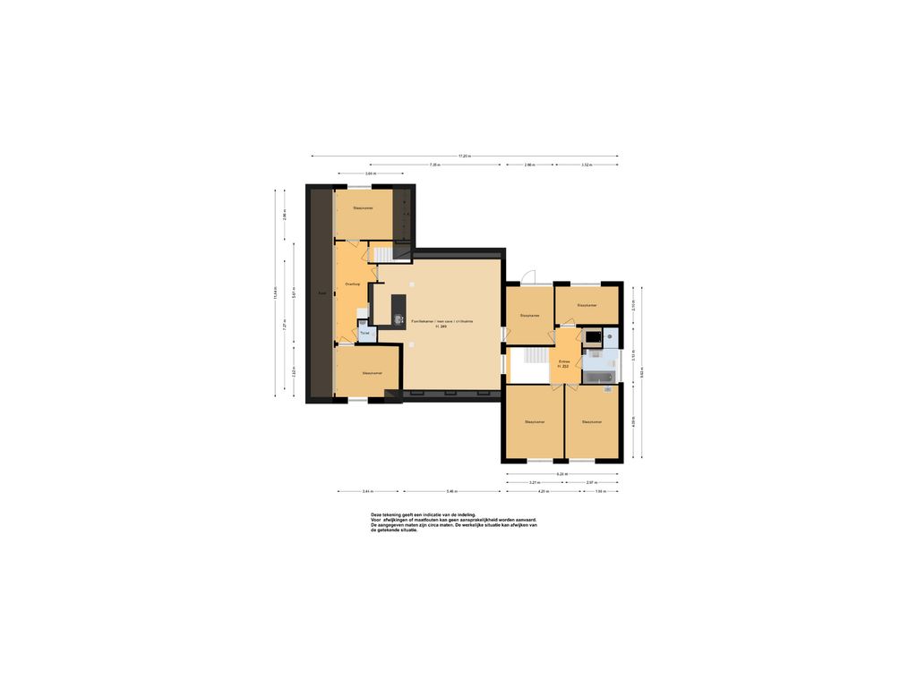 1e verdieping: via de overloop boven het woonhuis kunt u 5 ruime kamers bereiken. U treft hier 3 prima slaapkamers, een doorloop(slaap)kamer en een enorme familiekamer/mancave/kroeg/biljartkamer/chillruimte/gameroom aan. Alle slaapkamers zijn netjes afgewerkt. In een van de slaapkamers heeft u extra een wastafel tot uw beschikking. In 2 van deze slaapkamers kunt u een tweepersoonsbed plaatsen.