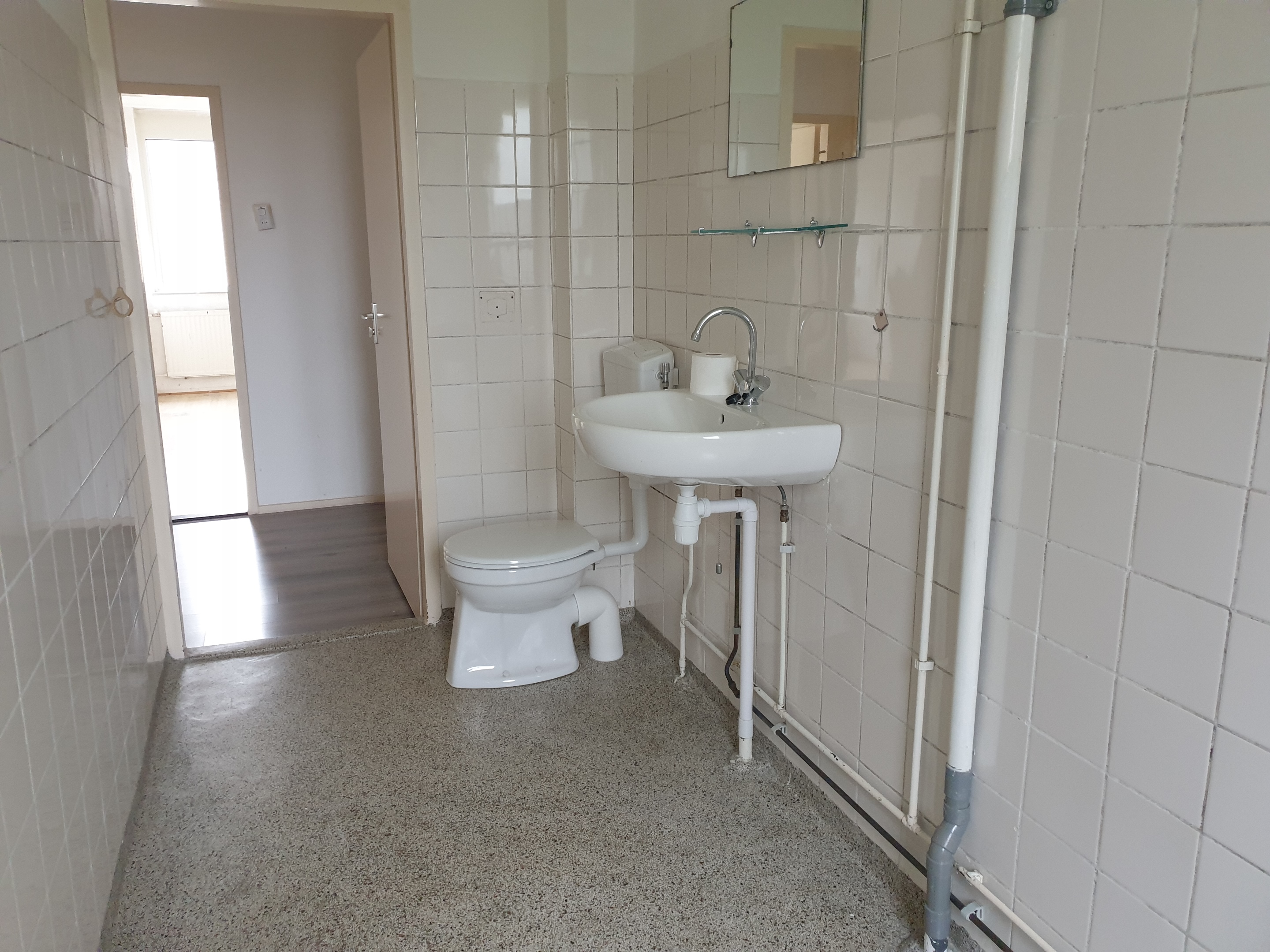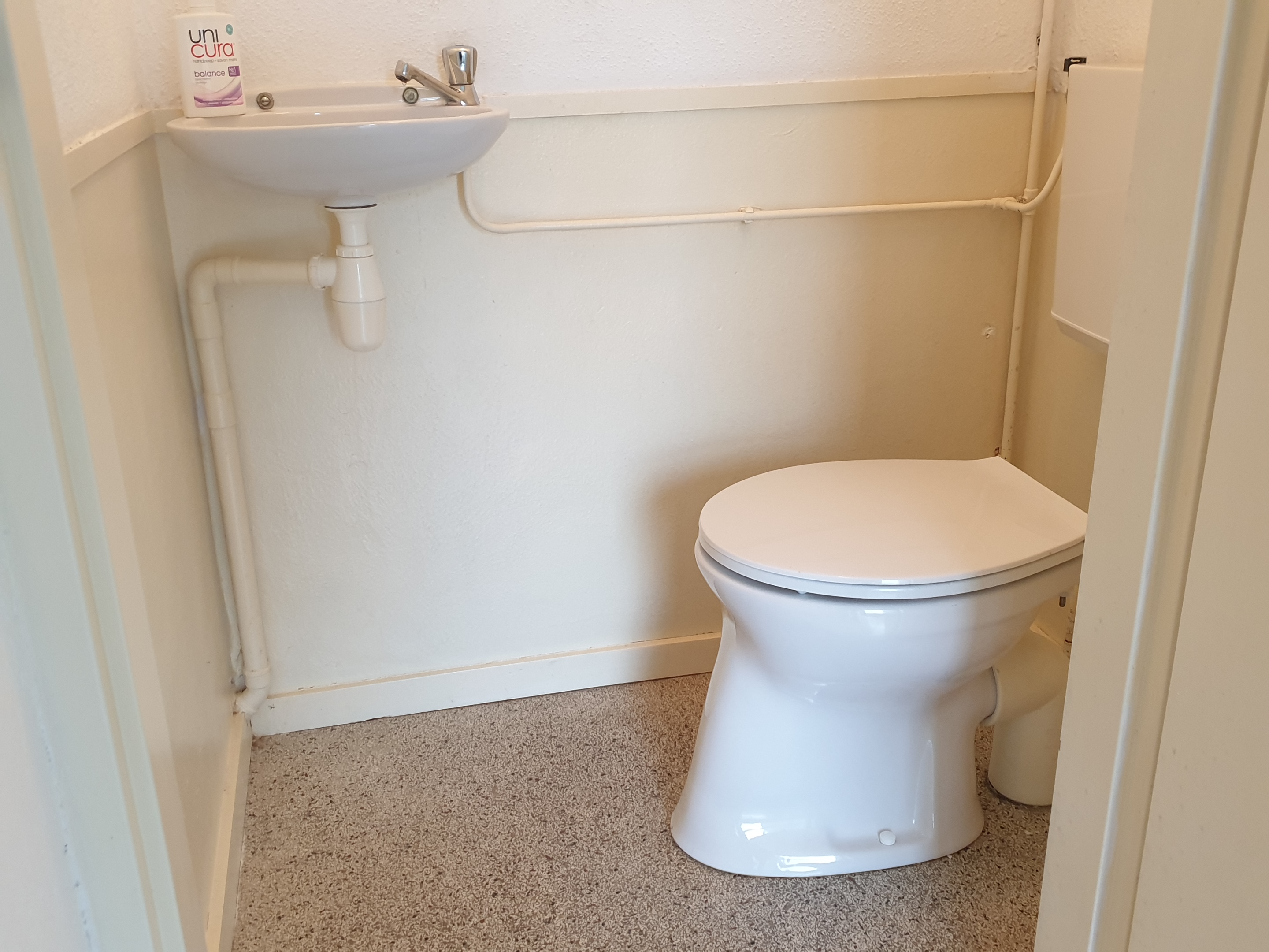 1e verdieping: grote overloop en drie flinke slaapkamers met veel daglicht en leuk zicht. Betegelde eenvoudige badkamer in lichte kleurstelling met douche, tweede toilet en wastafel.