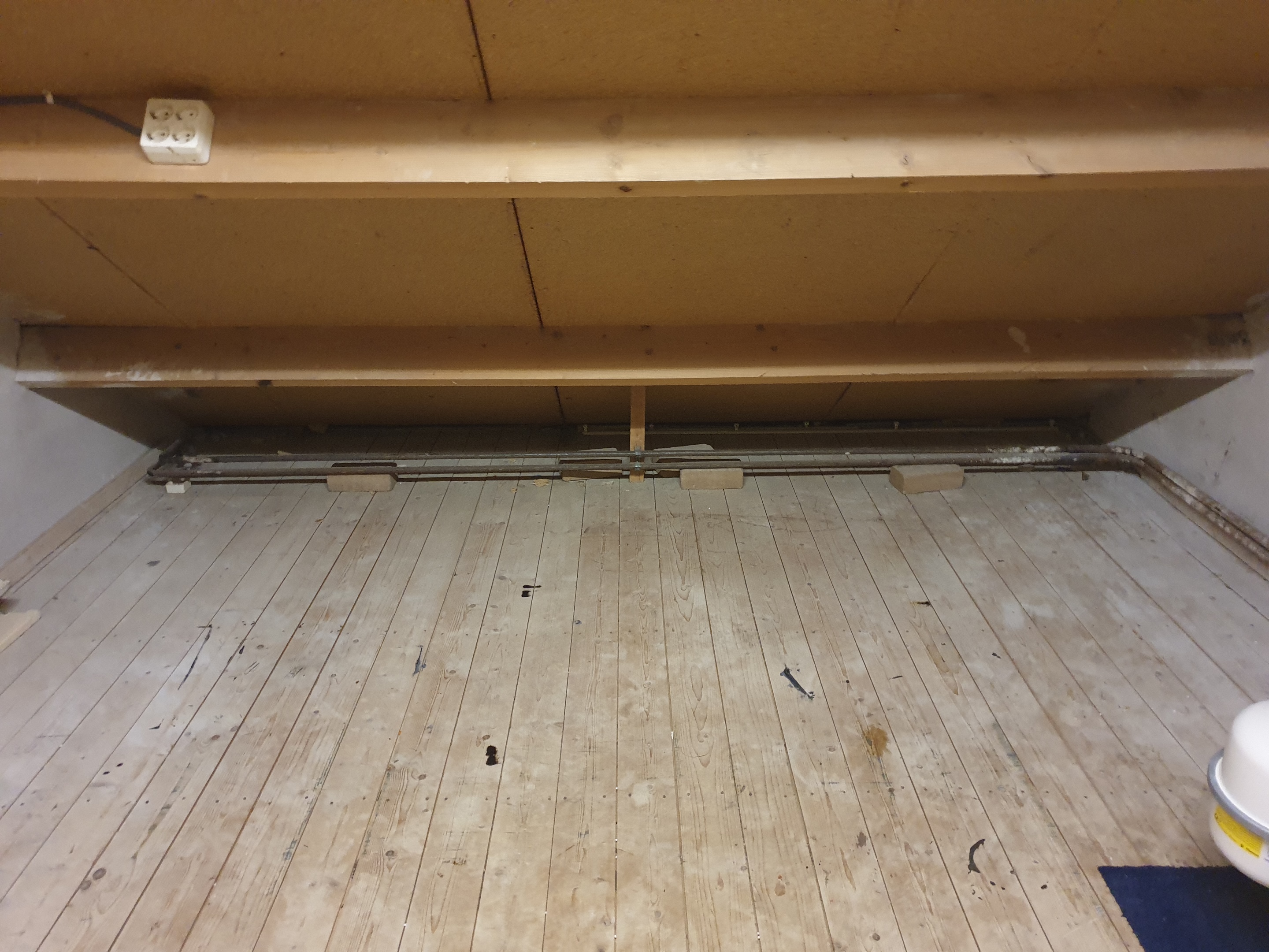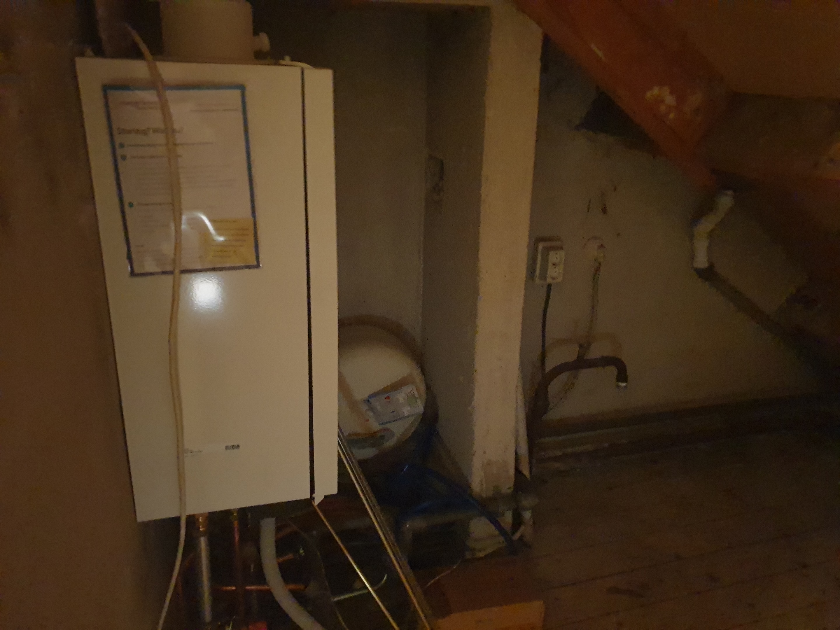 Opvallend grote zolderetage (houten verdiepingsvloer) via vaste trap met slaapkamer, CV-HRcombiketel (2019) en bergruimte.
