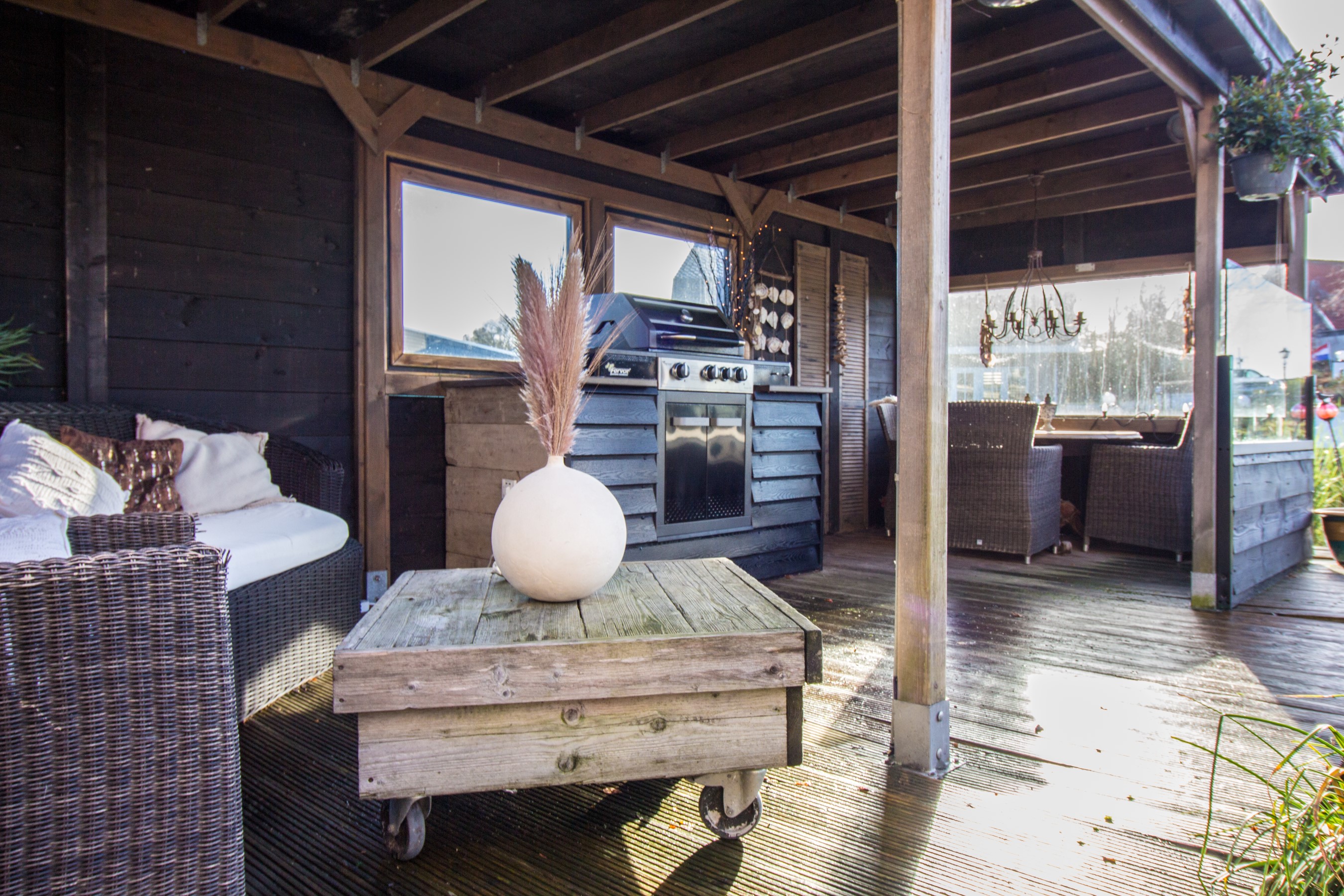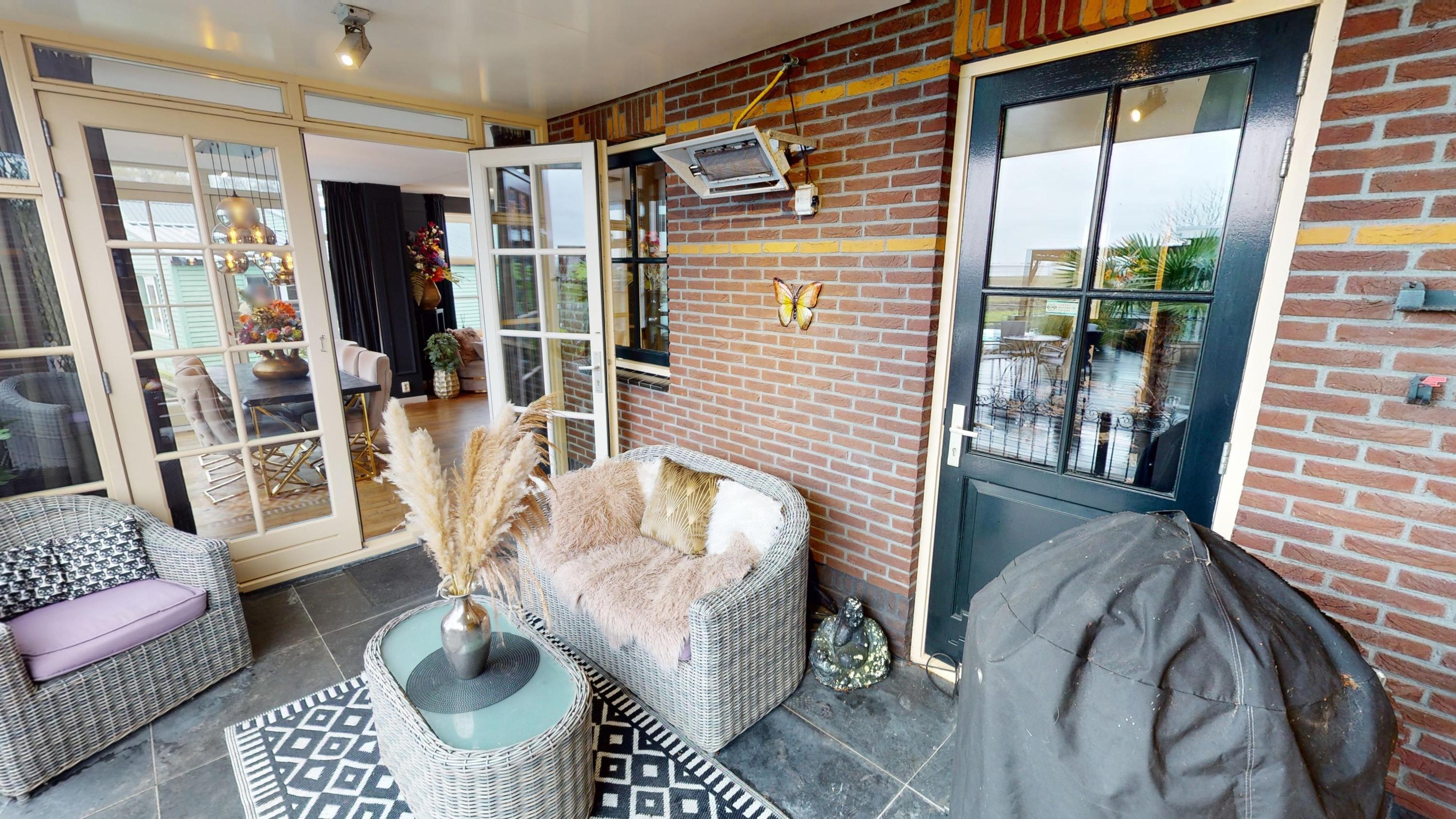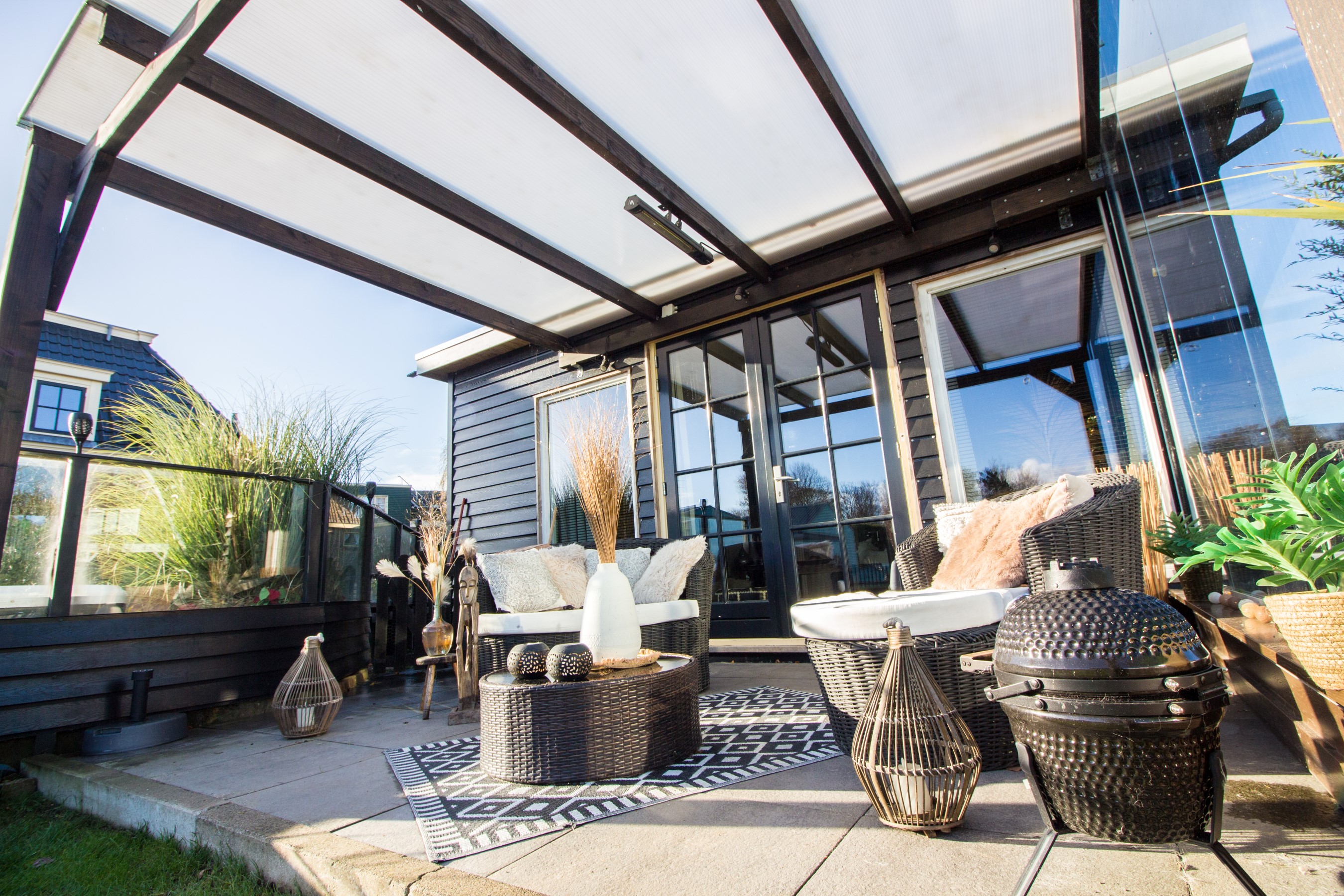 U heeft vanuit hier fraai zicht over de weilanden. Vanuit de serre heeft u ook toegang naar de overdekte veranda. Het geeft u een zeer gezellig (vakantie-) gevoel. U zult daarom ook veel gebruik maken van deze “buiten-woonkamer”. Zeker als u hier een fijne lounge-set plaatst! Via de veranda kunt u de achterliggende tuin bereiken.