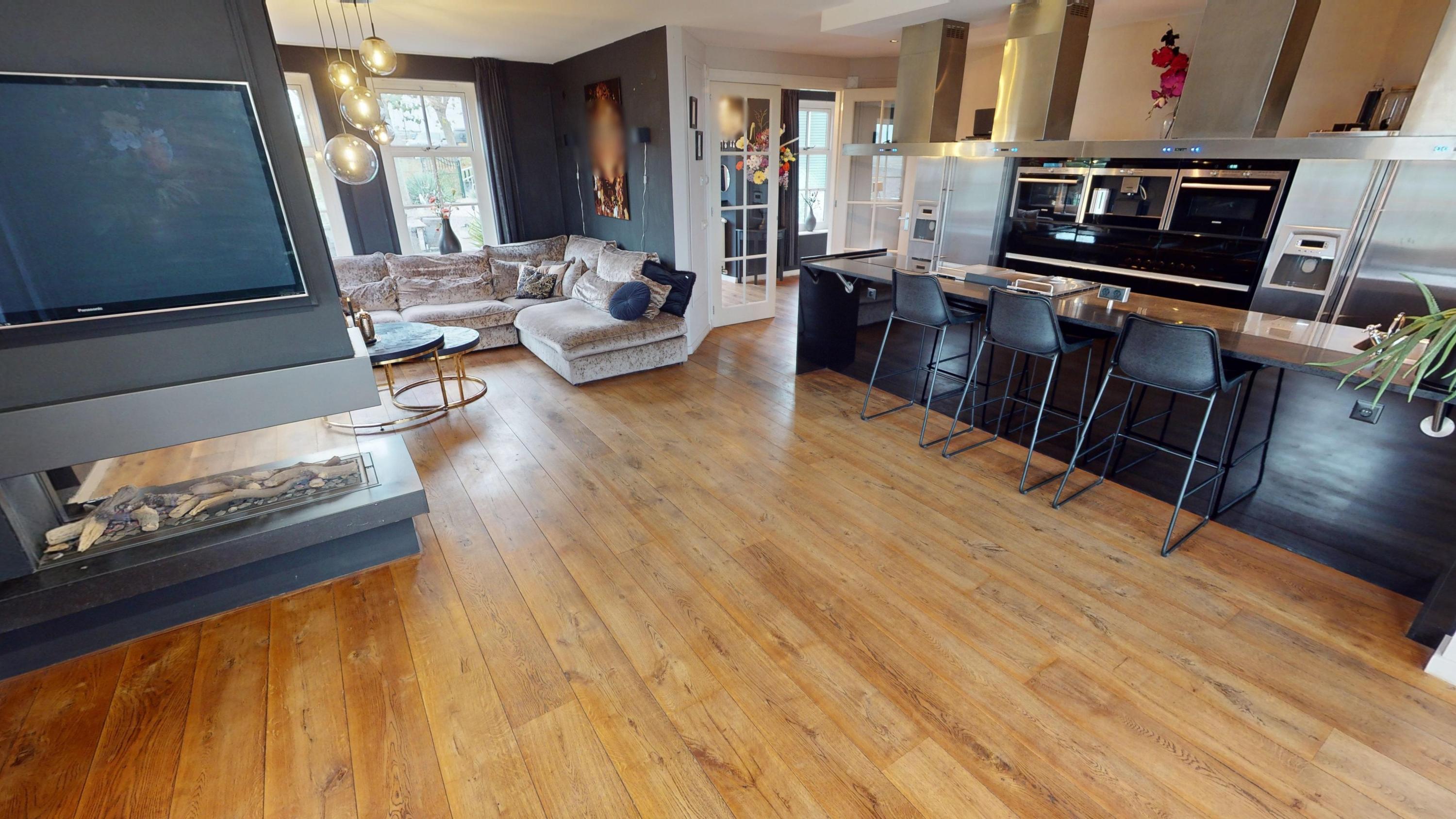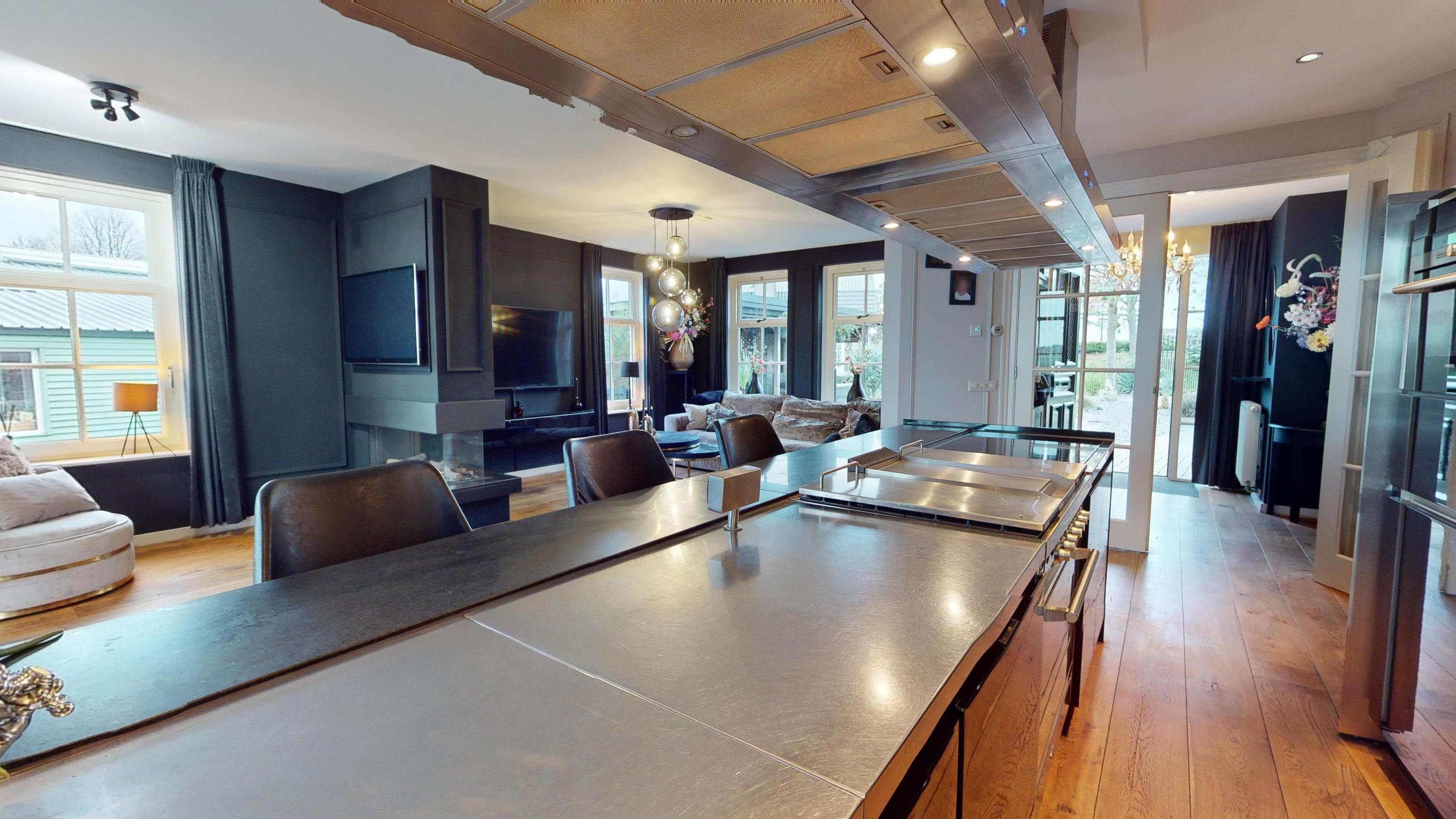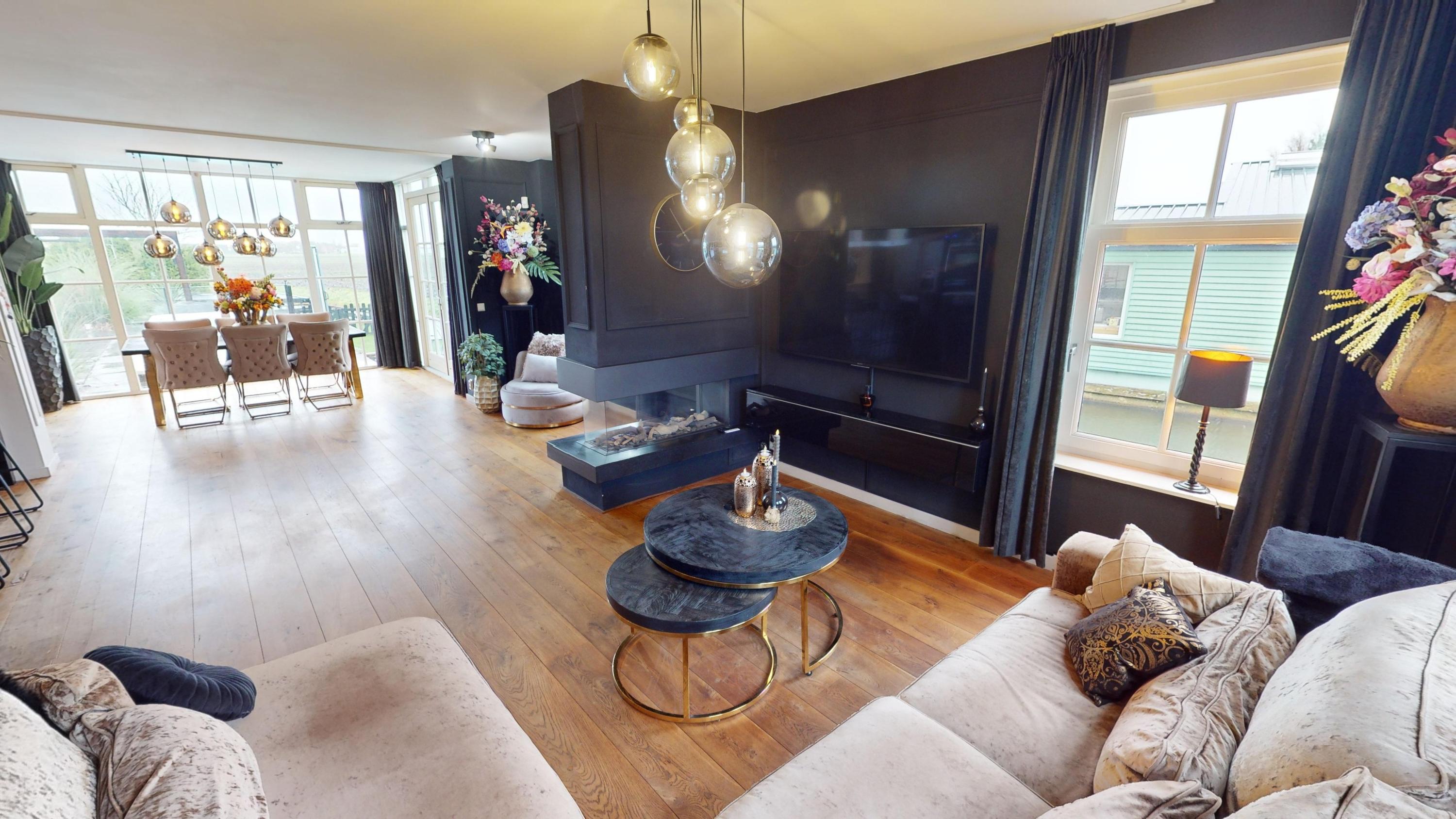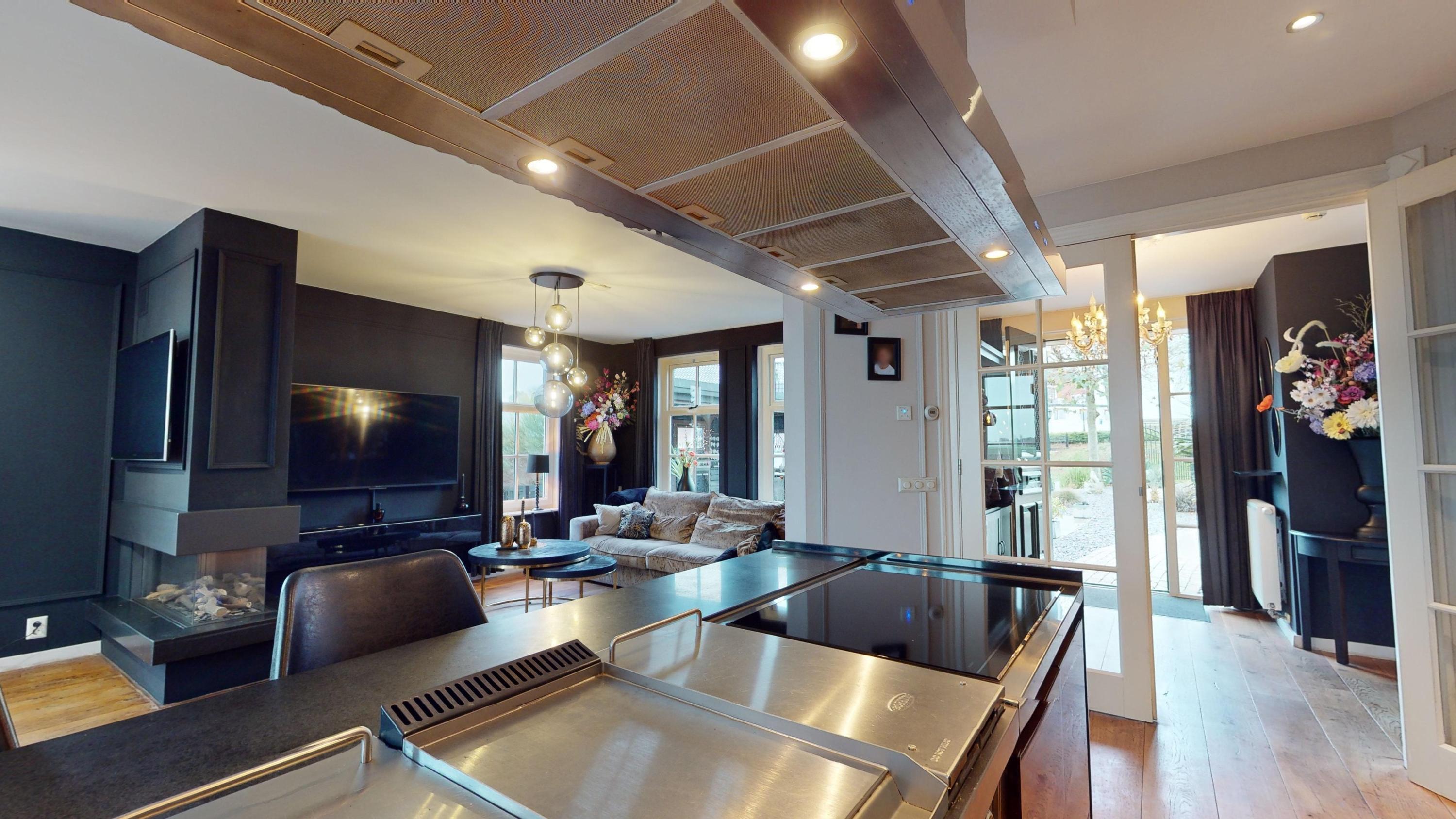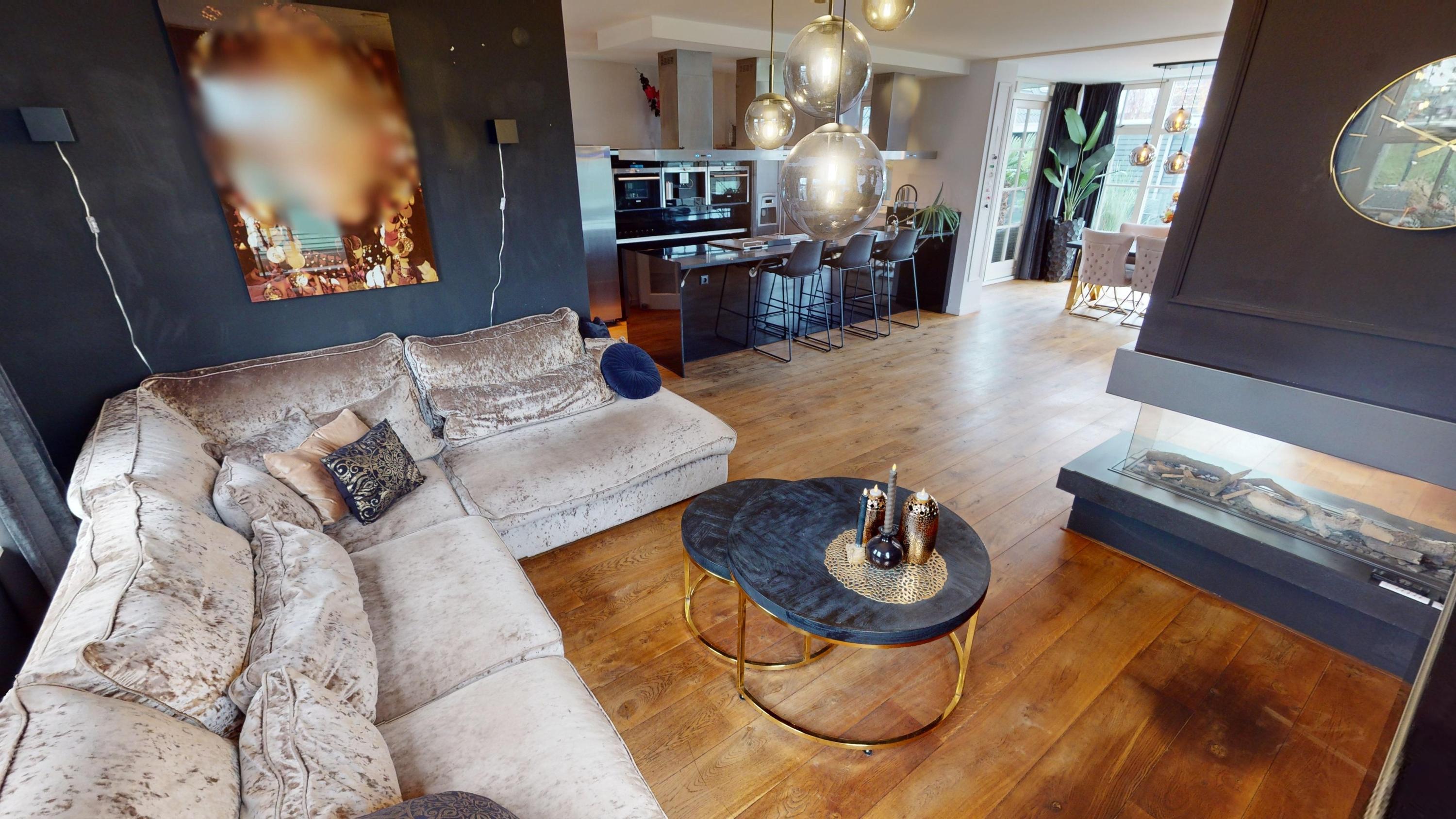 Woonkamer: Via de hal komt u middels openslaande deuren in de ruime woonkamer met aan de voorzijde een ruime zitgelegenheid. In deze ruimte kunt u prima een loungebank plaatsen. Voor de romantische avondjes is de fijne, strak vormgegeven gashaard aanwezig. Een fijn muziekje opzetten of lekker Netflixen op de bank met het surroundsysteem vol aan ( lekker nietwaar, vrijstaand wonen..) en genieten maar! Centraal in deze ruimte vindt u de zeer ruime luxe keuken.