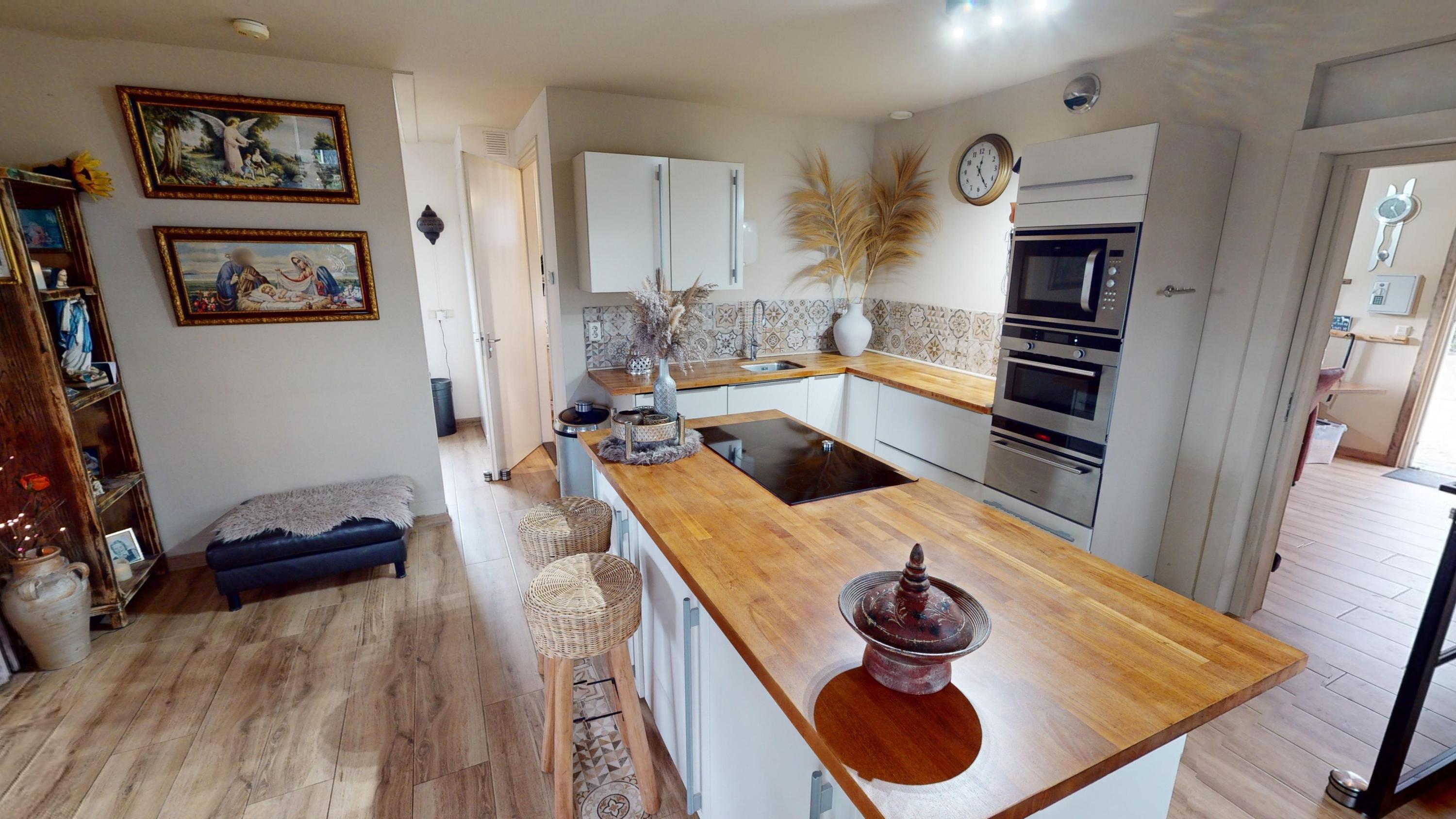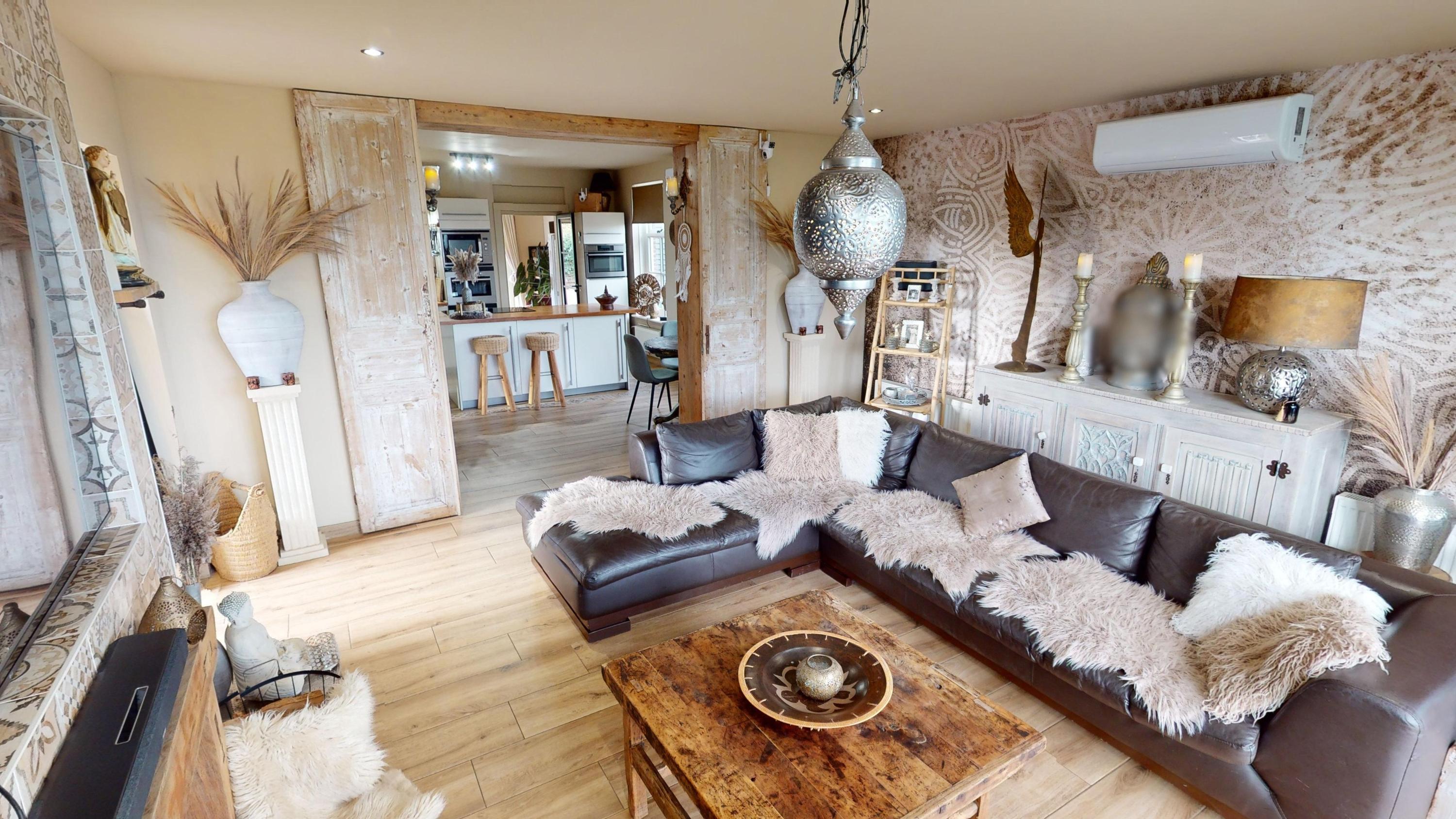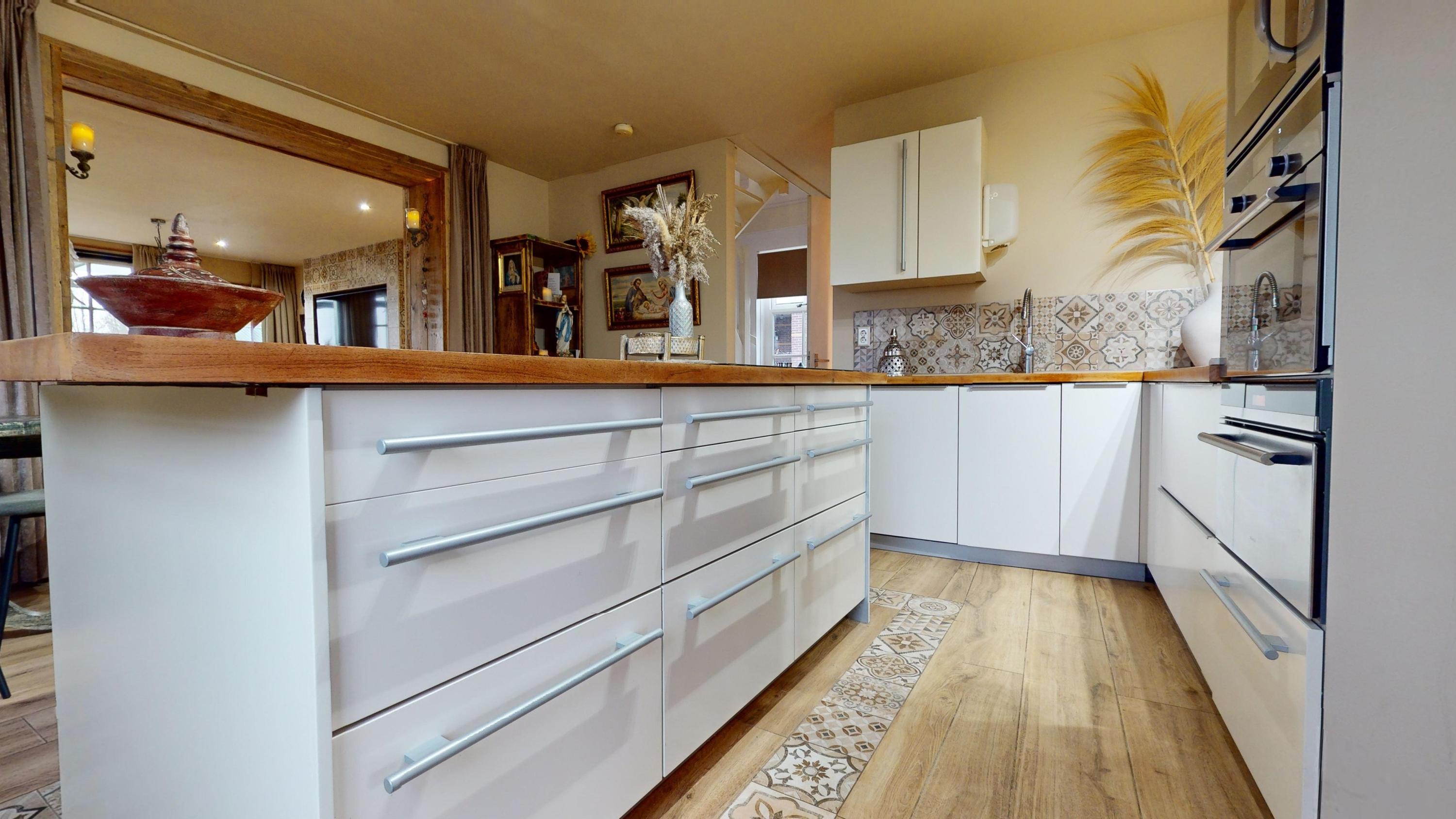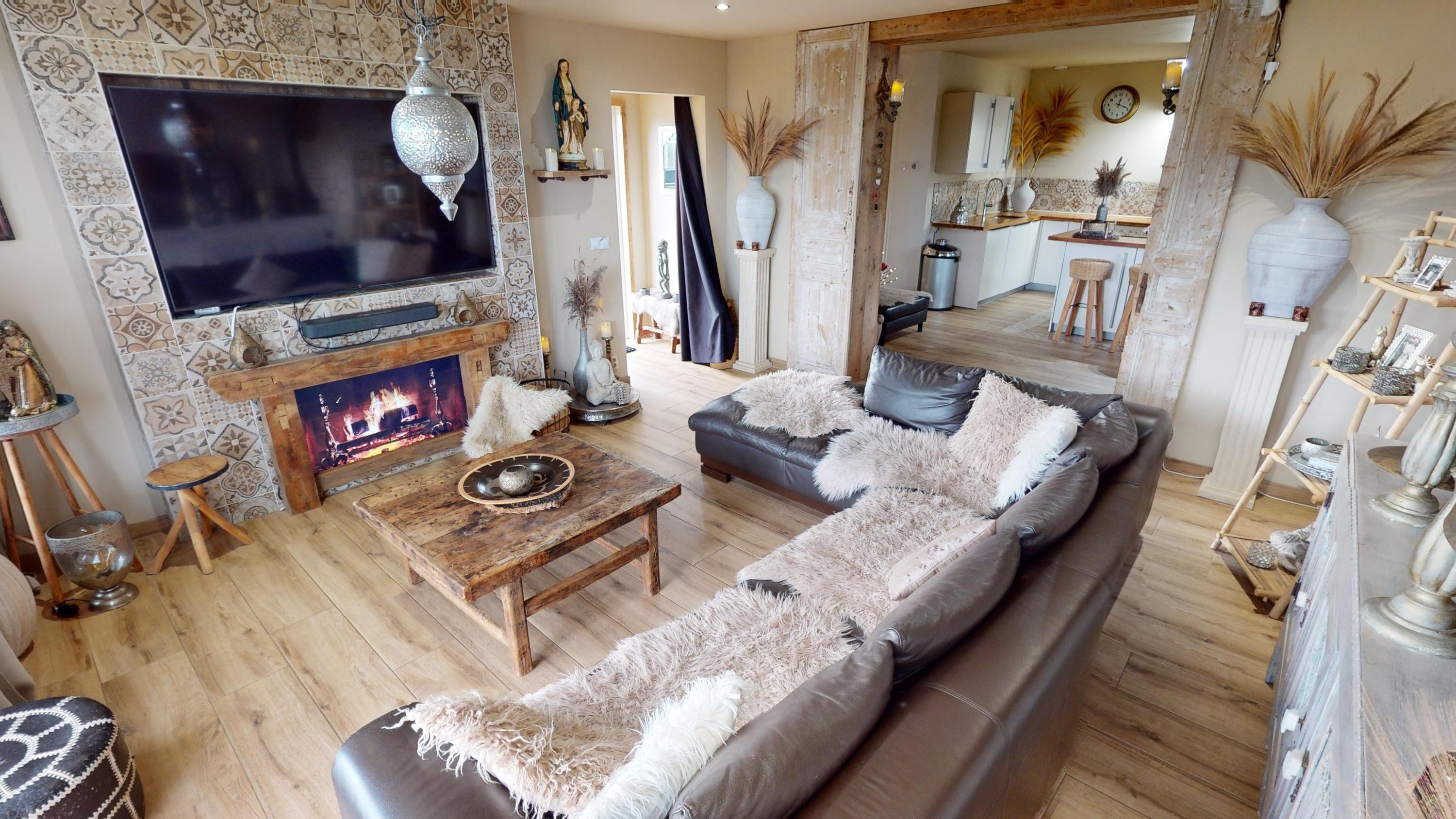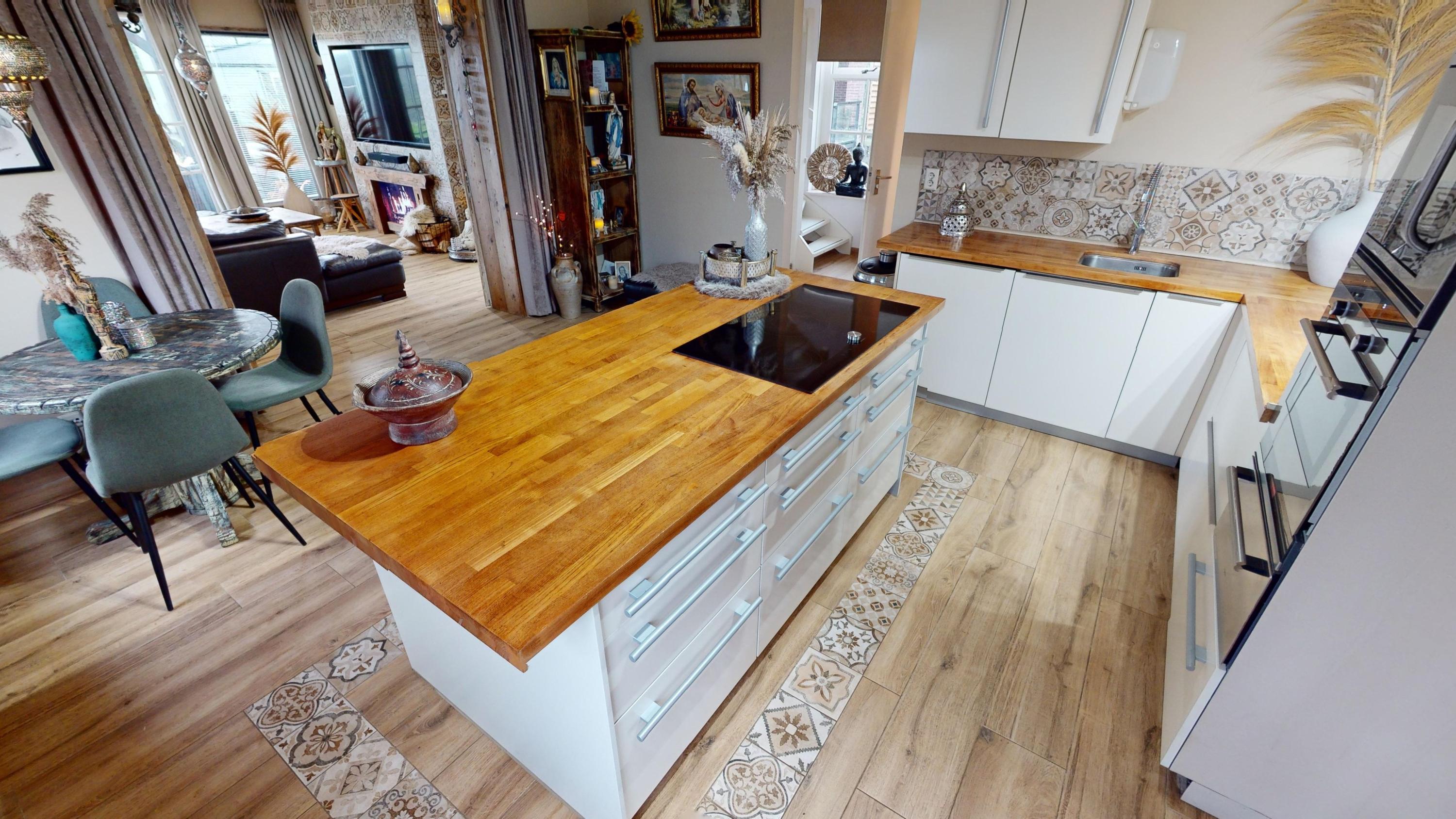 Woonkamer: Via de hal komt u middels openslaande deuren in de ruime woonkamer met aan de voorzijde een ruime zitgelegenheid. In deze ruimte kunt u prima een loungebank plaatsen. Voor de romantische avondjes is de fijne, strak vormgegeven gashaard aanwezig. Een fijn muziekje opzetten of lekker Netflixen op de bank met het surroundsysteem vol aan ( lekker nietwaar, vrijstaand wonen..) en genieten maar! Centraal in deze ruimte vindt u de zeer ruime luxe keuken.