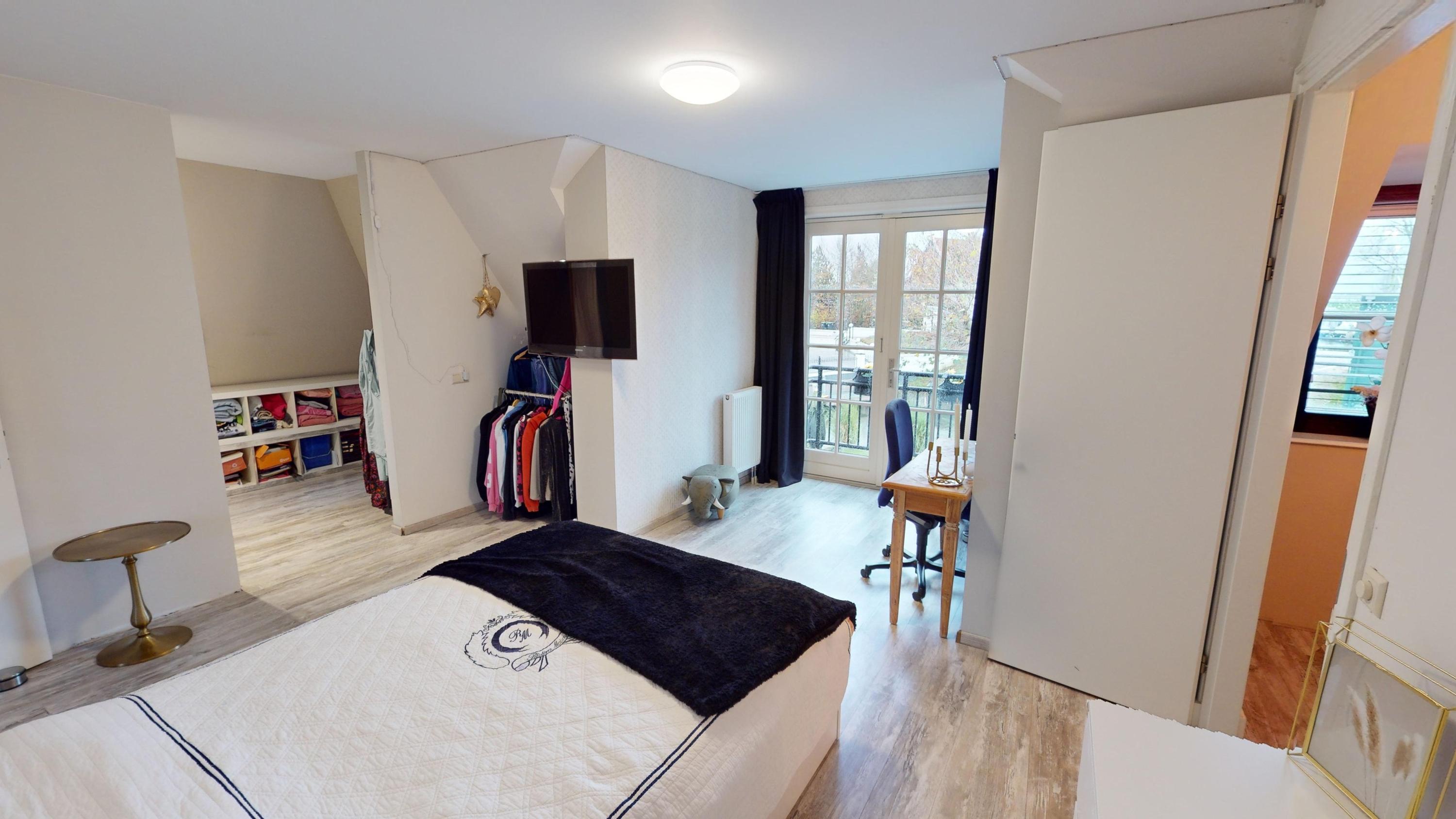 1e verdieping: op de 1e verdieping zijn er thans 2 slaapkamers tot uw beschikking. De etage is zo ruim, dat u hier prima 3 slaapkamers van kunt maken, waardoor het totaal inclusief de slaapkamer op de parterre op 4 slaapkamers komt. De grote slaapkamer is naast een ruim balkon ook uitgevoerd met een walk-in-closet. In deze walk-in-closet kunt u verdwalen. In de 2e slaapkamer kunt u prima een 2-persoonsbed plaatsen. Deze slaapkamer is uitgevoerd met een dakkapel. Beide slaapkamer zijn direct verbonden met de badkamer.