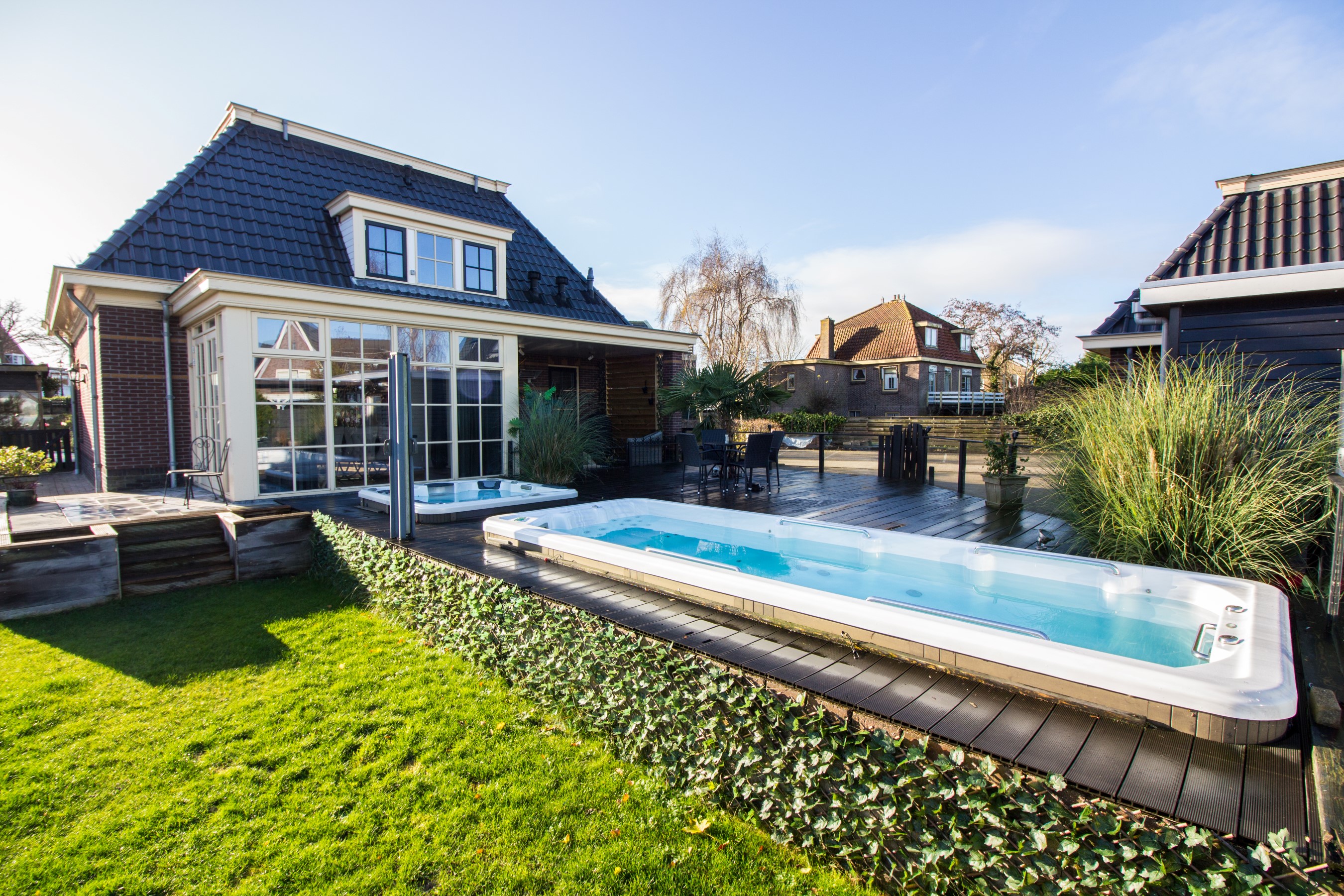In de tuin, achter het woonhuis, treft u een flinke zwemspa, zodat u uw conditie op peil kunt houden. Na de nodige inspanning nog even fijn relaxen in de jacuzzi (ook lekker in de winter!). Heerlijk relaxen in uw eigen tuin, wat wilt u nog meer? Op uw eigen terrein heeft u de mogelijkheid voor het parkeren van diverse auto’s, busjes, caravan en camper. Geen probleem, hier is voldoende ruimte voor.