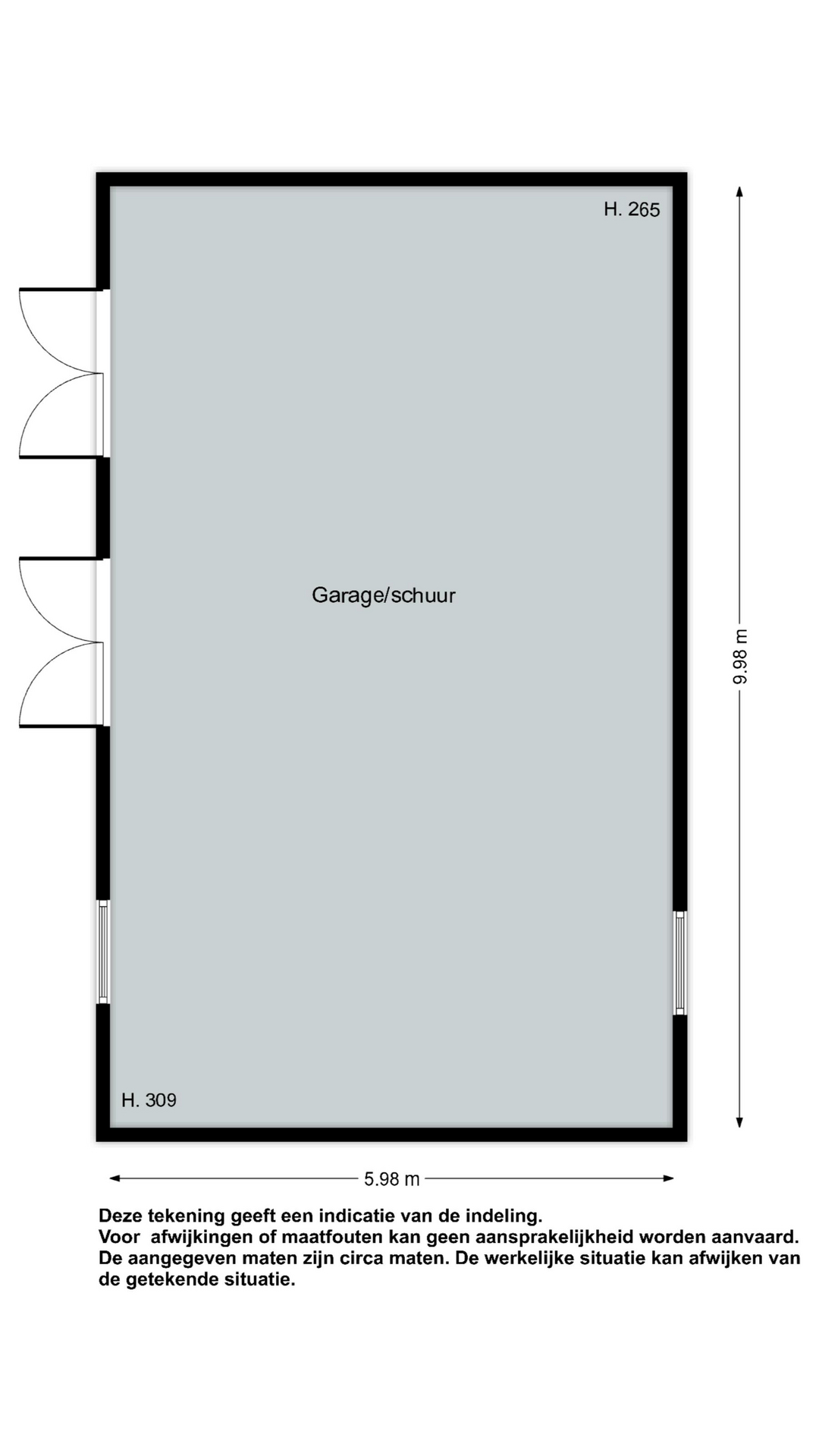 Garage / schuur: achter in de tuin is een grote garage van zo’n 60 m² aanwezig. De garage is uitgevoerd met dubbele deuren. Bovendien is de garage ook voorzien van daglicht. Houdt u van klussen, dan heeft u de perfecte plek te pakken. In deze garage heeft u voldoende ruimte om uw werkzaamheden te verrichten. Daarnaast is de garage groot genoeg voor het stallen van uw auto’s, motoren, fietsen. Uiteraard blijft er nog voldoende ruimte over voor uw tuingereedschap en tuinmeubelen.