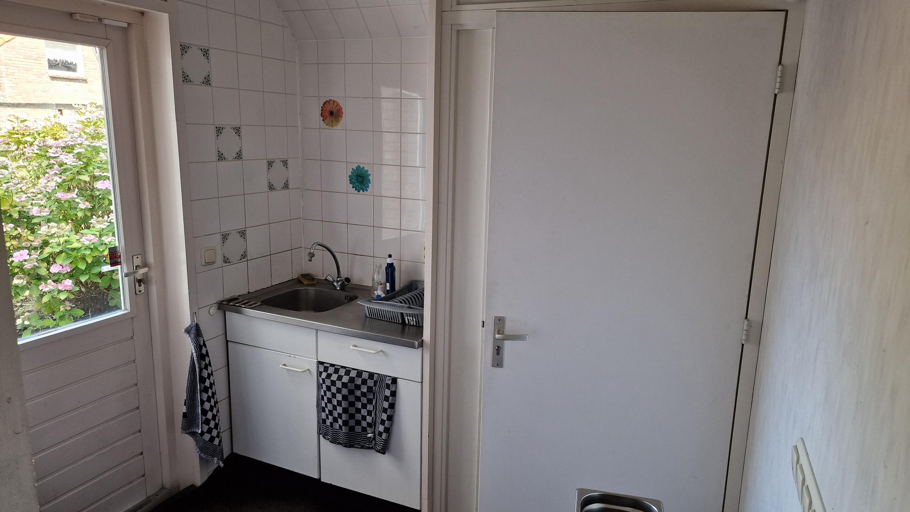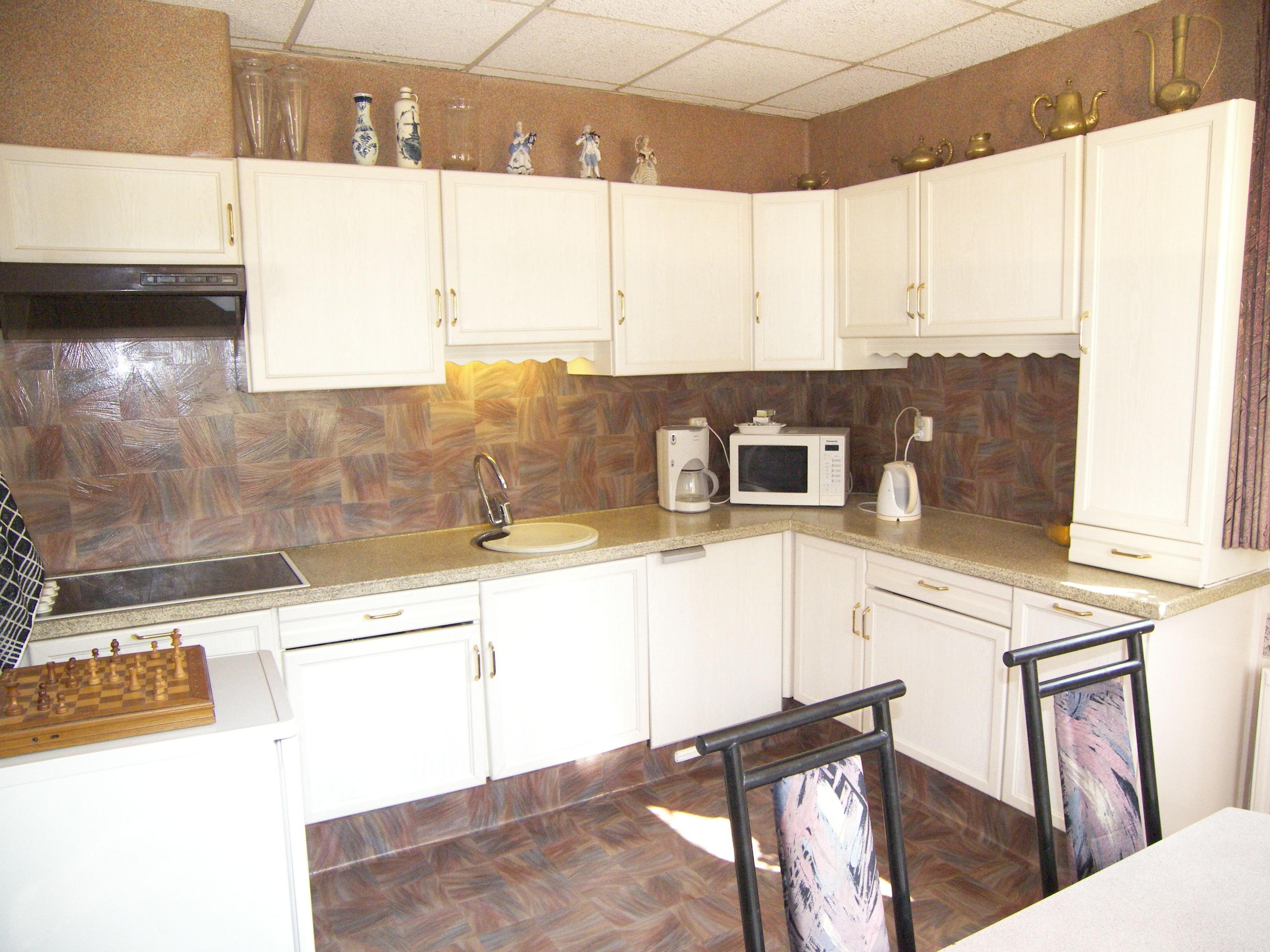 De woonkamer is licht en zonnig door de vele ramen en u kunt hier door de praktische indeling op diverse wijzen uw interieur inrichten. De functionele keuken in lichte kleurstelling is in een L-opstelling geplaatst en voorzien van een keramische kookplaat, afzuigkap en koelkast.