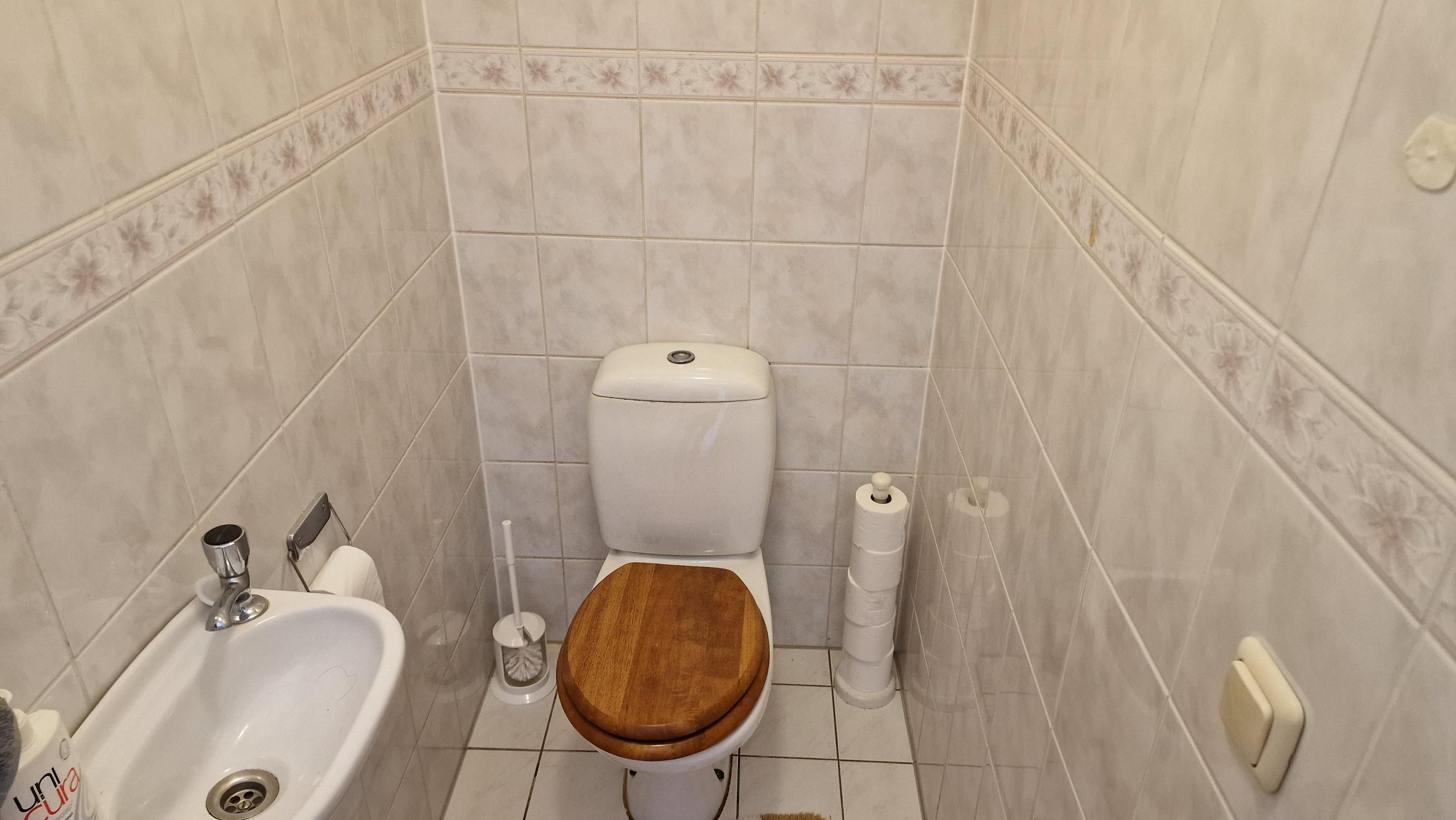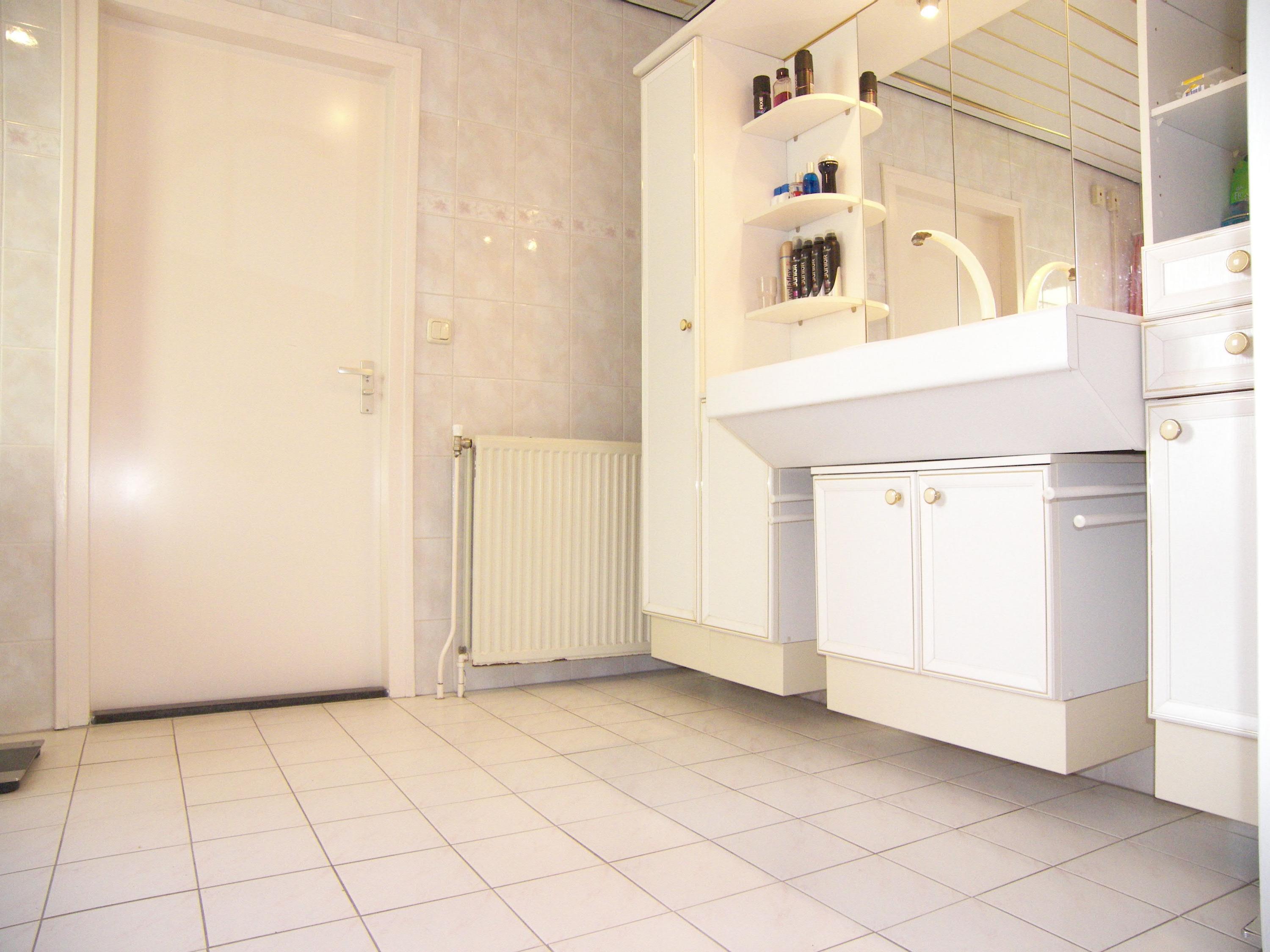 Direct grenzend aan de ruime slaapkamer met balkondeur aan de achterzijde ( met toegang tot het dakterras ) is de ruime badkamer gelegen. De badkamer is volledig betegeld en voorzien van een douchecabine, wastafelmeubel en wasmachine aansluiting.
