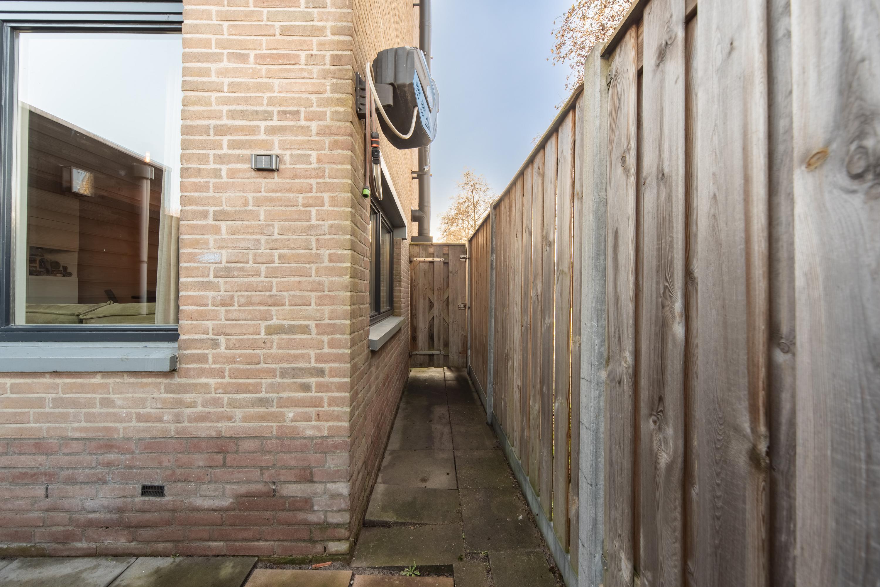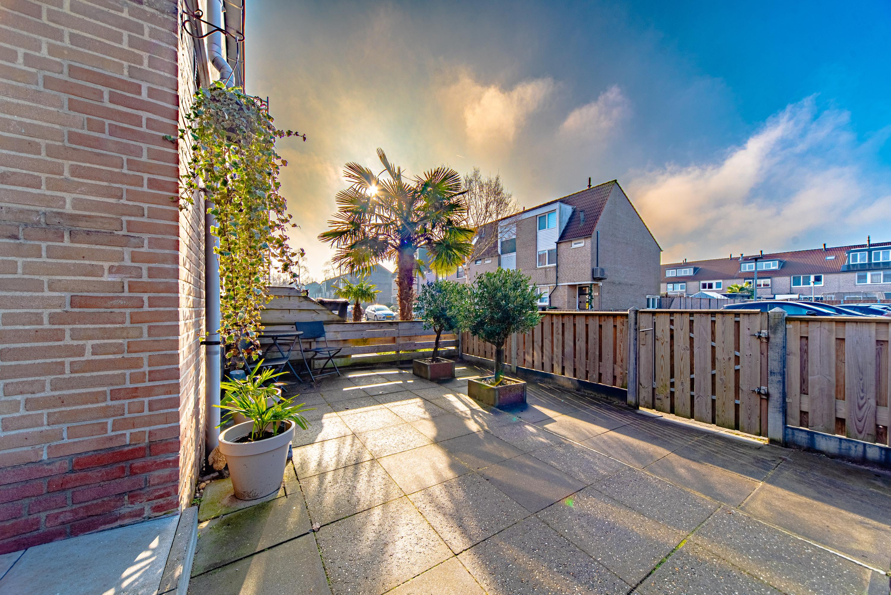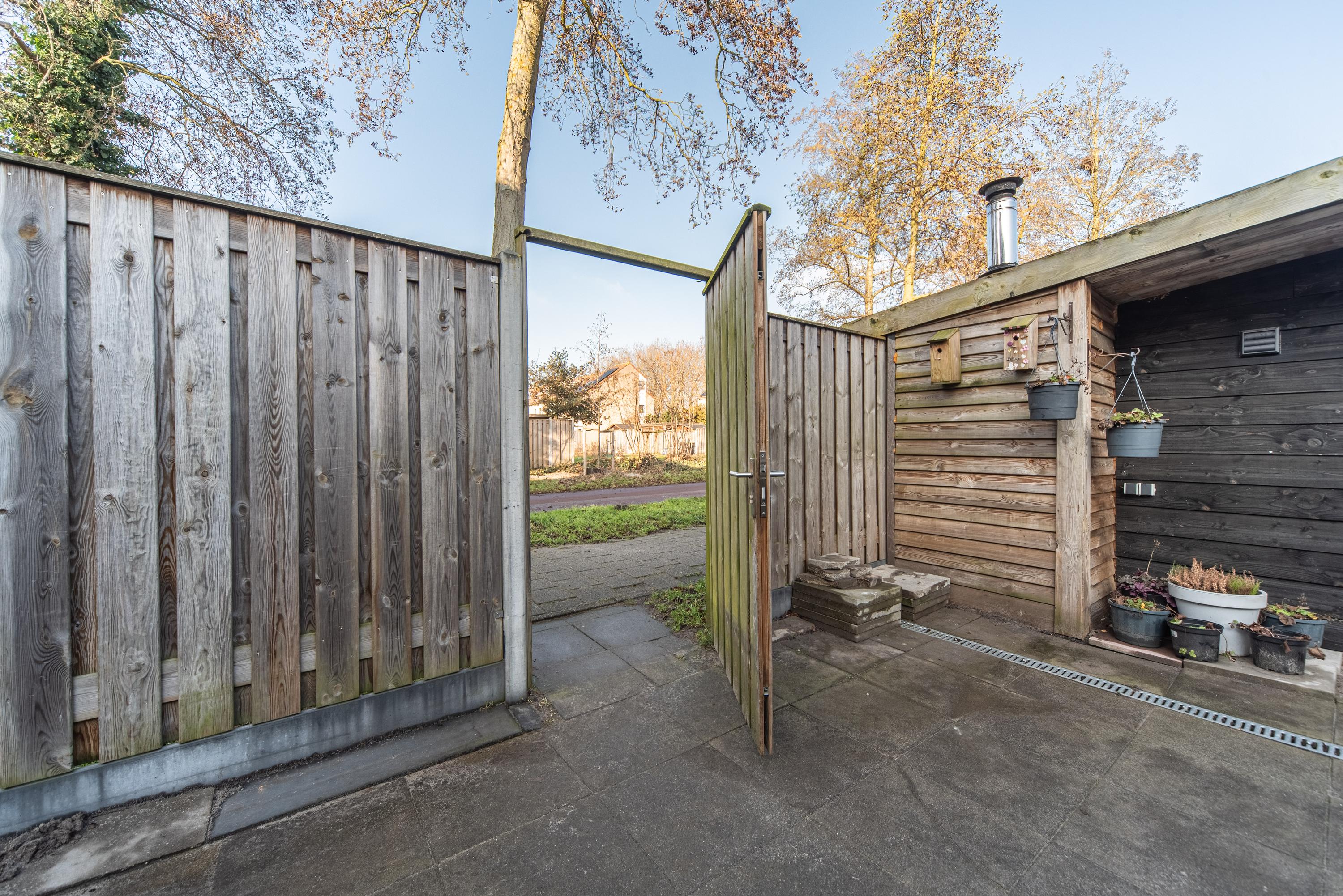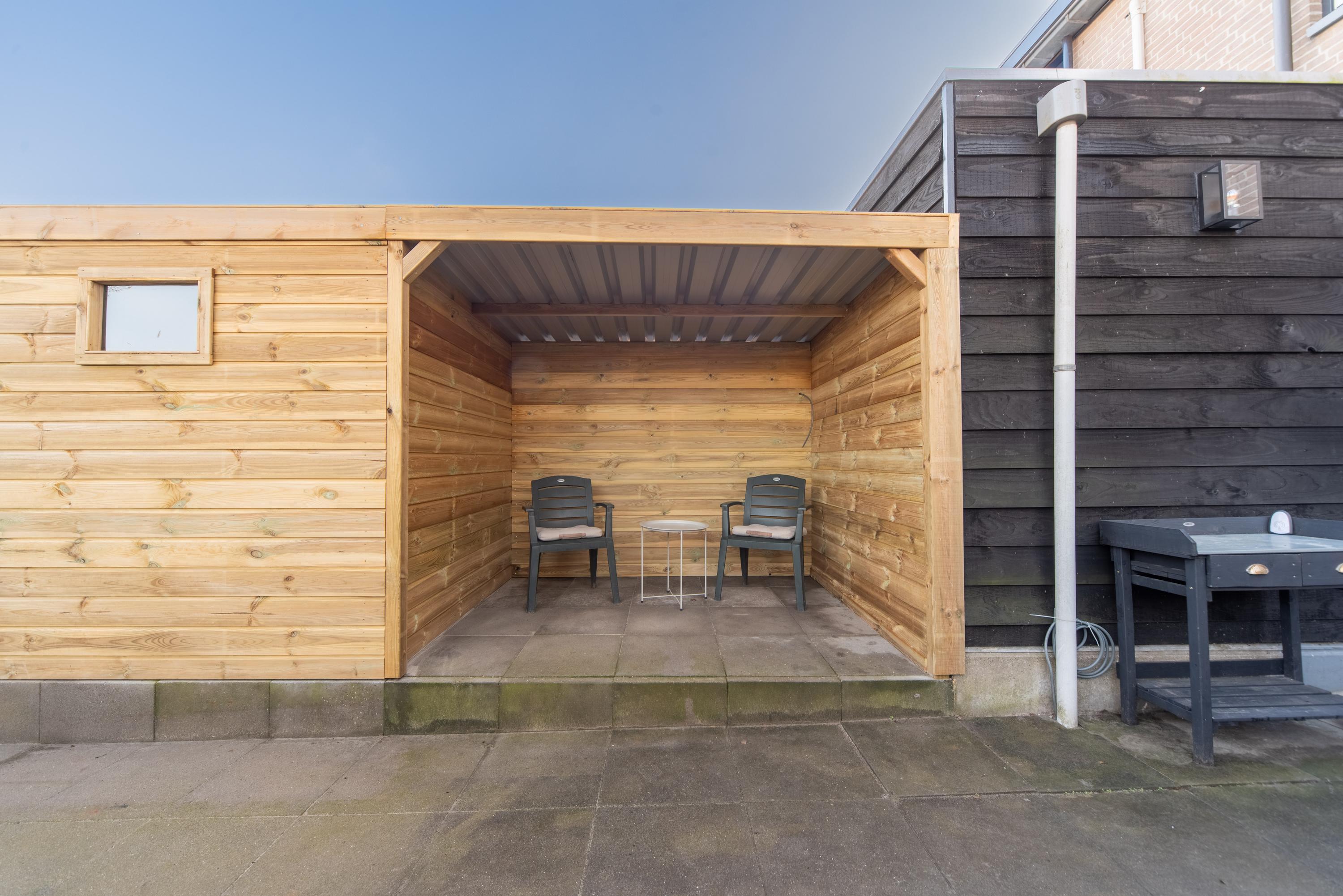 De volledig betegelde achtertuin, gelegen op het noordoosten, is verzorgd aangelegd en beschikt over een nagenoeg nieuwe overkapping met berging, een achterom en een tweede berging/hobby werkplaats, wat zorgt voor voldoende opslag- en gebruiksmogelijkheden.