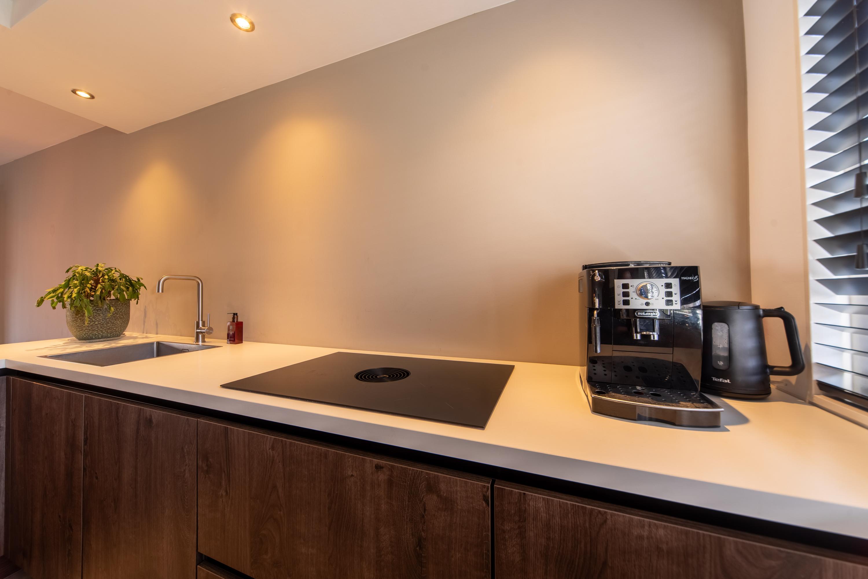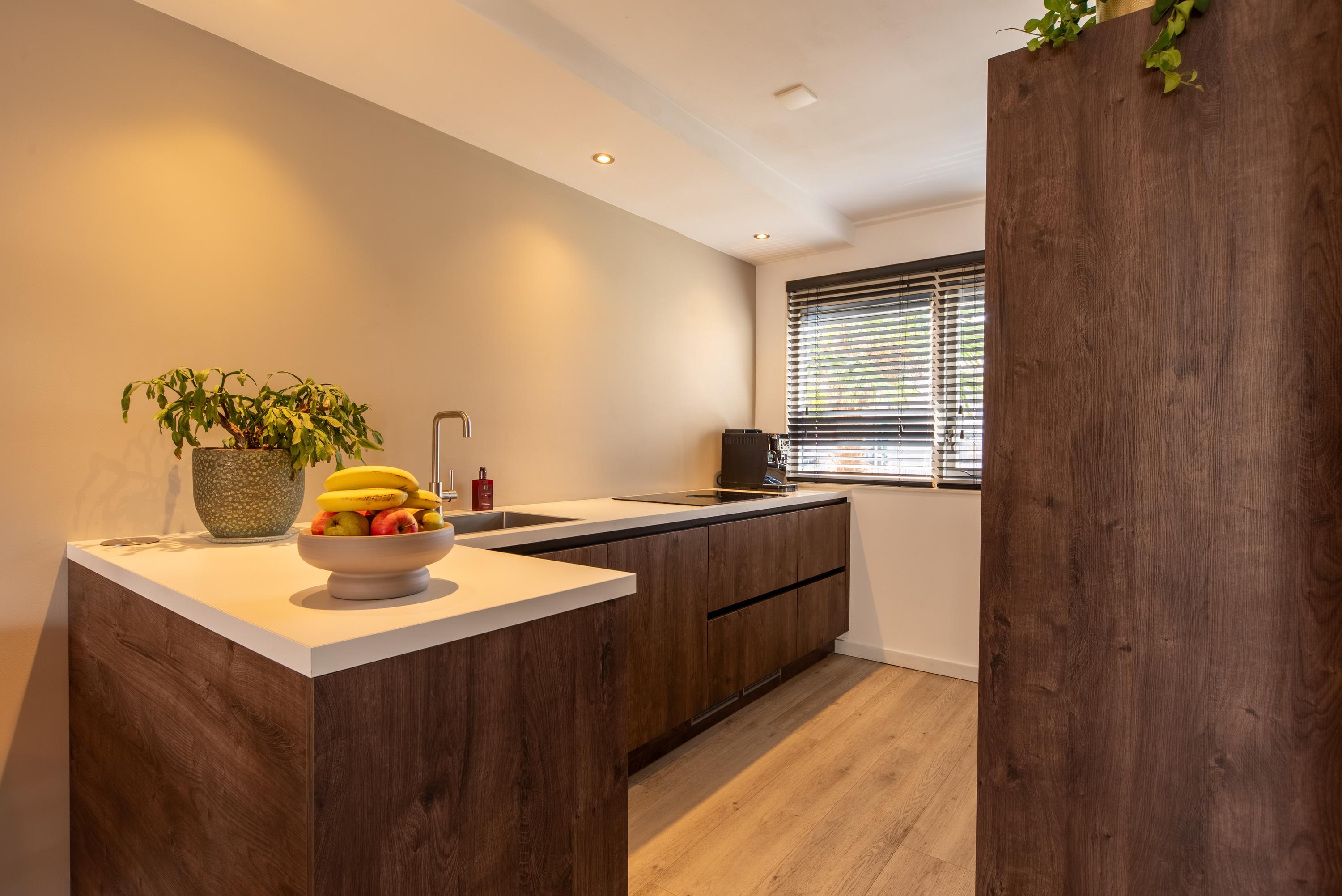 Eind 2021 is de nieuwe keuken geplaatst, die uiteraard van alle gemakken is voorzien. Zoals een vaatwasser, aparte koelkast, vriezer, combi magnetron met oven en een Bora inductiekookplaat met geïntegreerde afzuiginstallatie met plasmafilter. De keukenkastjes zijn uitgevoerd in een warme Oregan eiken houtmotief en geven een luxe uitstraling.