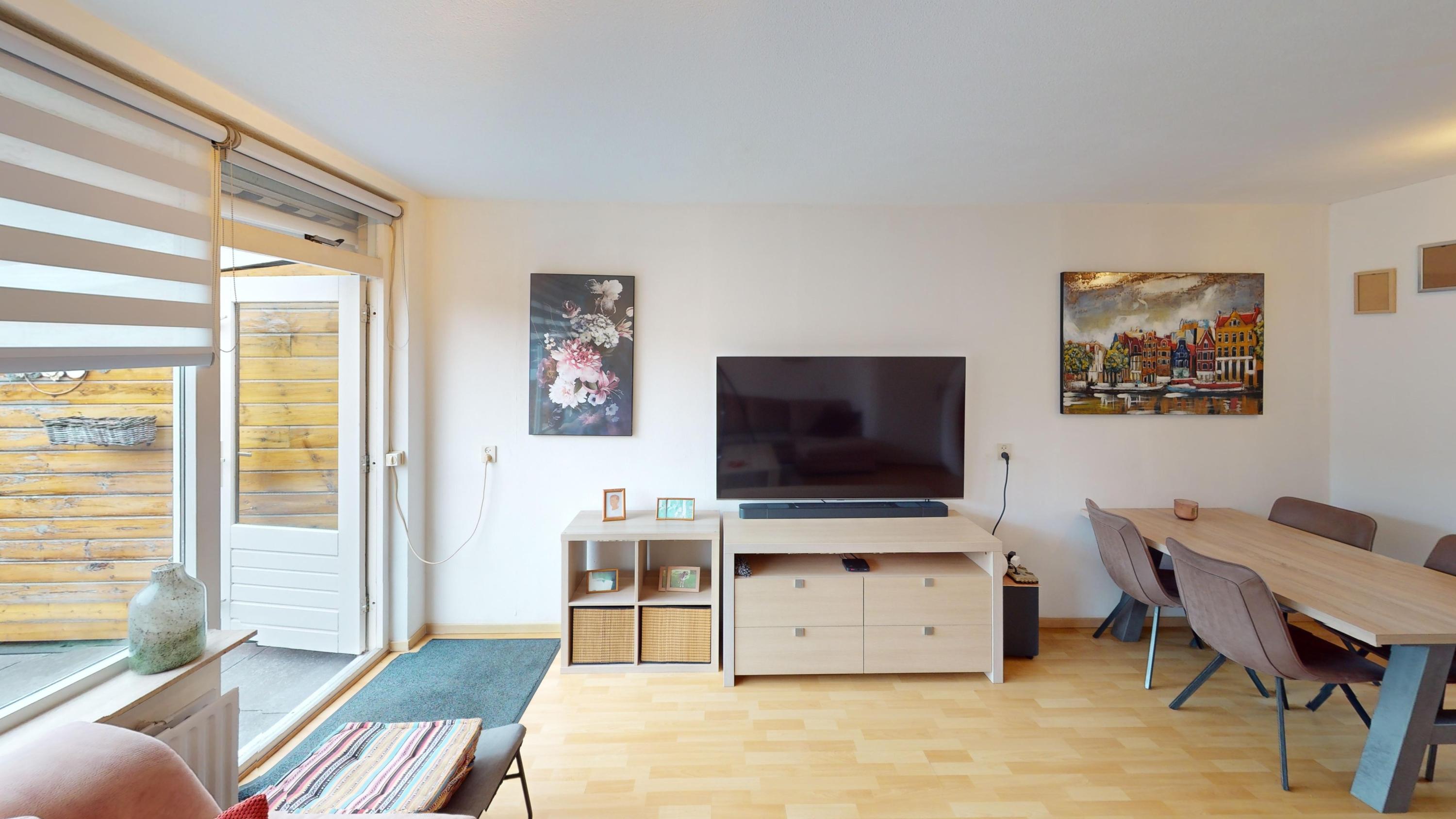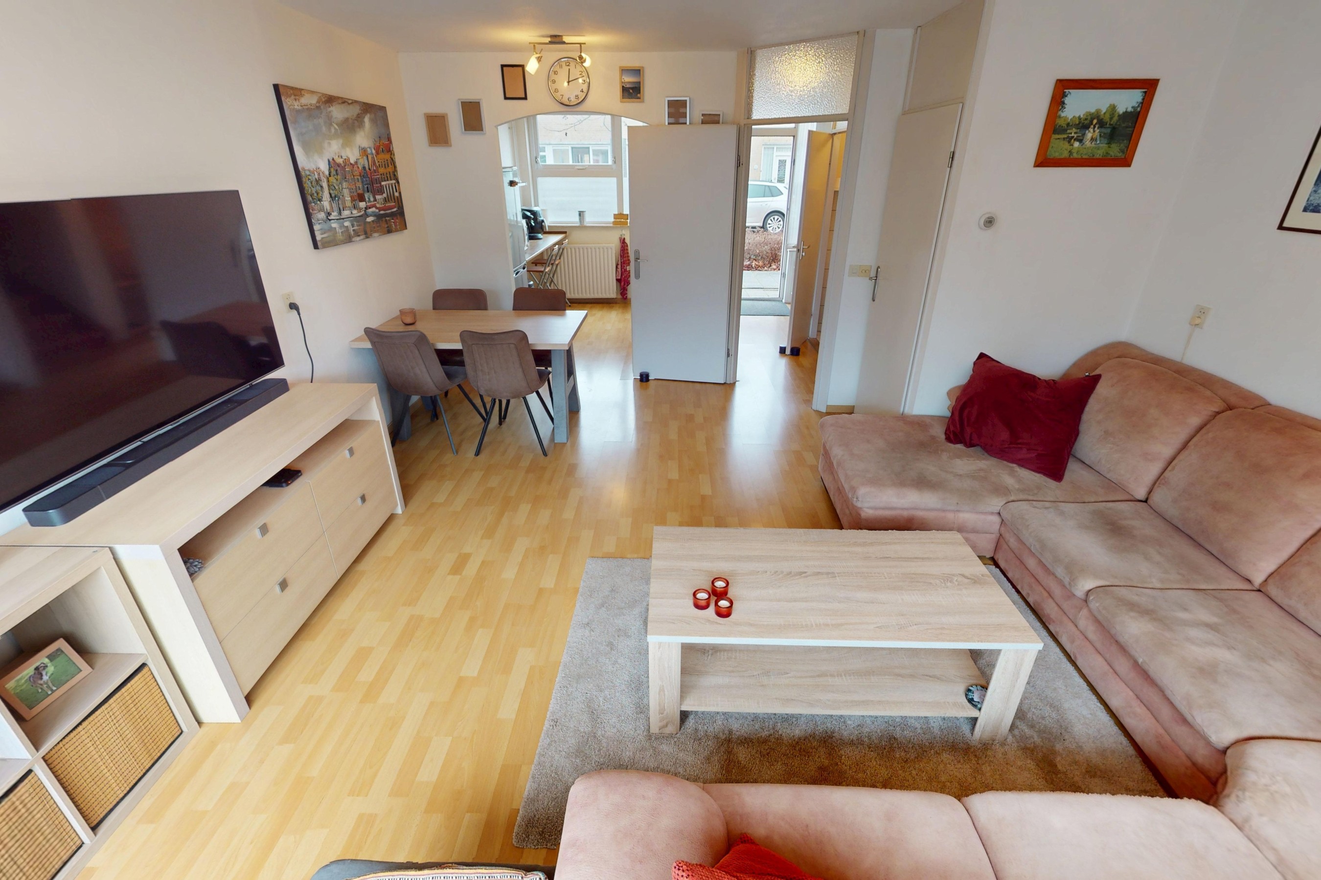 De tuingerichte woonkamer geeft u met de openslaande tuindeur direct toegang tot de achtergelegen terrastuin op het westen. Door de vormgeving van de living kunt u op diverse wijzen uw interieur inrichten. Vanaf de bank heeft u ook een heerlijk uitzicht op de tuin. Door de gunstige ligging van deze woning heeft u veel privacy in uw living. Op de vloer treft u een laminaatvloer, de wanden en het plafond zijn keurig netjes afgewerkt. In de ruimte heeft u een ruime trapkast tot uw beschikking. Altijd handig om uw spulletjes een plekje te geven.