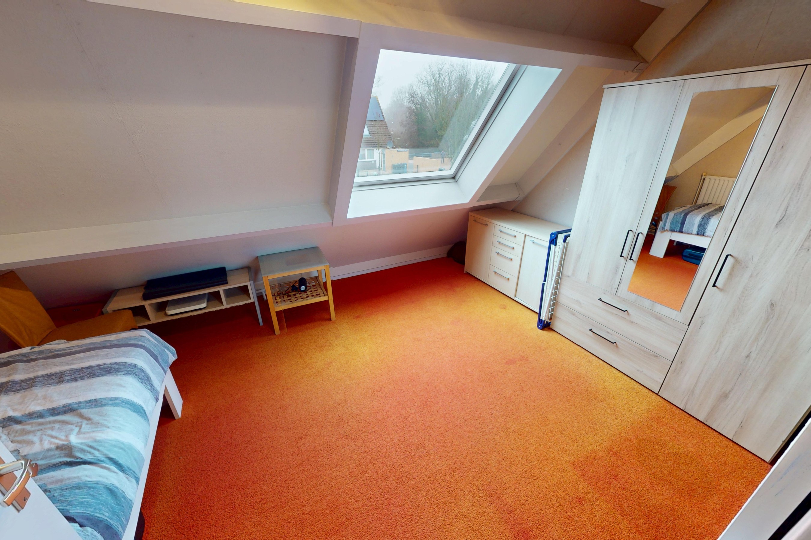 1e verdieping: via de overloop heeft u toegang tot 2 slaapkamers over de volle breedte van de woning en een flinke badkamer. Beide kamers zijn keurig afgewerkt. In alle twee de slaapkamers kunt u eenvoudig een 2-persoonsbed plaatsen.