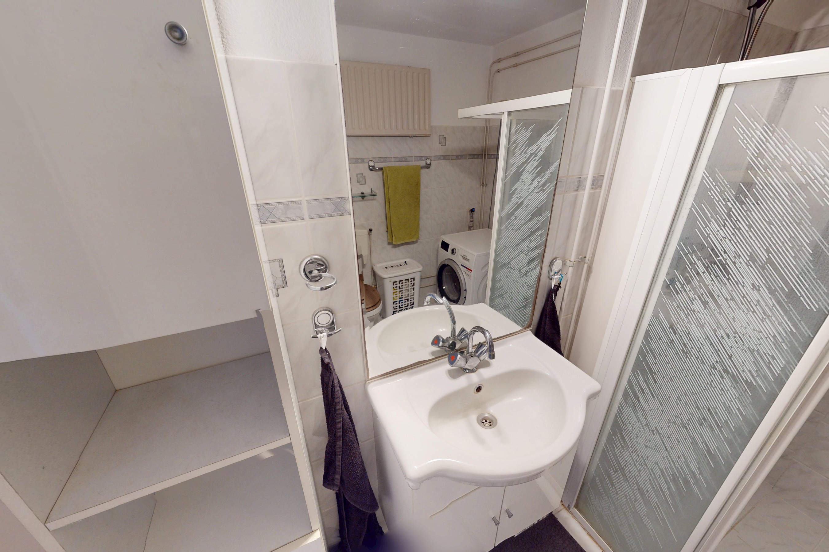 De badkamer is betegeld in een lichte kleurstelling met deels stucwerk op de wanden. Verder is deze functionele badkamer voorzien van een douchegelegenheid, wastafelmeubel met kast en closet. Bovendien kunt u in deze badkamer prima uw wasmachine een plaatsje geven.