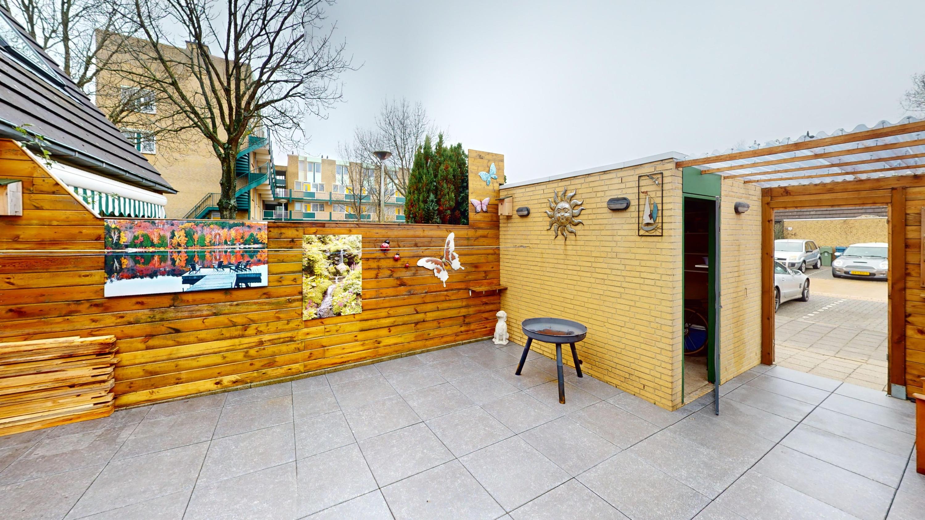Tuin: de fijne terras/tuin op het westen zal u de gehele dag voorzien van heerlijke zonnige temperaturen. Wanneer het te zonnig is, kunt u fijn beschut in de schaduw onder het terrasscherm plaatsnemen. De sierbestrating maakt dat de tuin onderhoudsarm is. Een heerlijke tuin om gezellig met het gezin, vrienden of familie een feestje te vieren! Wanneer u komt kijken, let u dan eens op de privacy dat u in deze tuin zult ervaren. Via een poort kunt u het parkeerterrein bereiken. Zo kunt u ook met uw boodschappen achterom. U heeft hier voldoende parkeergelegenheid.