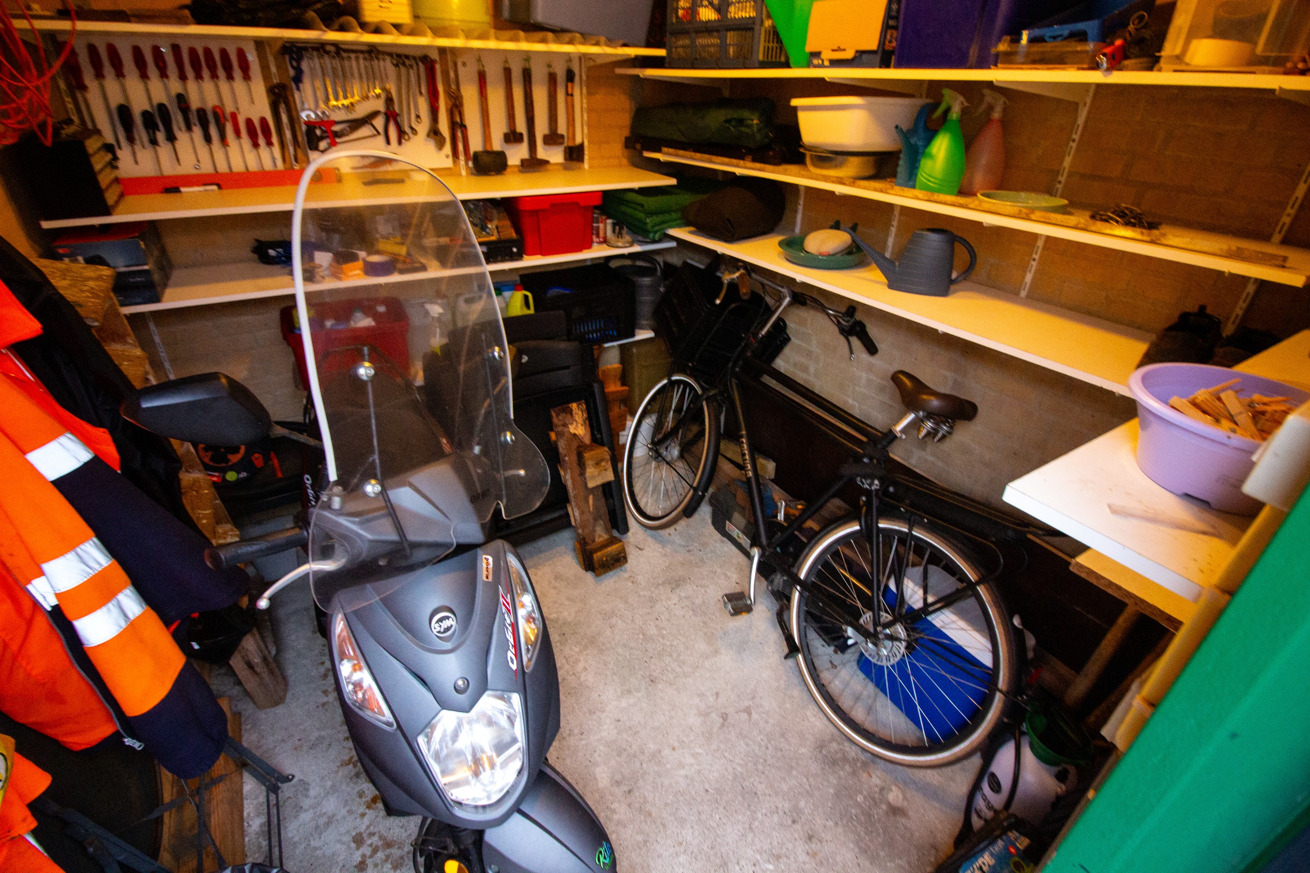 Berging: de berging aan de achterzijde is een ideale plek om uw fietsen en gereedschappen te stallen of op te bergen. De berging is voorzien van een betonvloer. U kunt prima achterom komen met uw motor om deze in uw berging of bij uw huis te stallen.